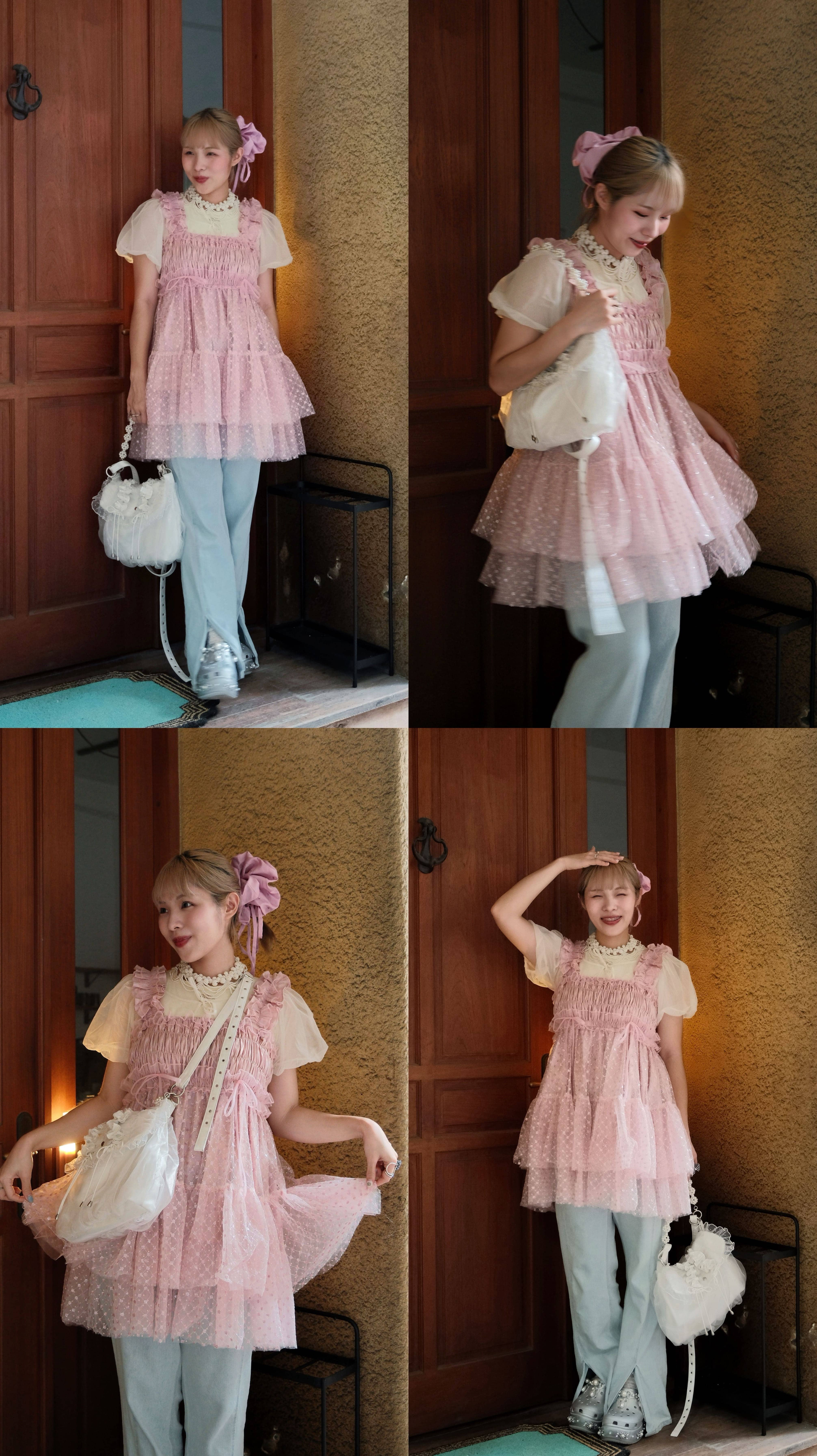 搭配品牌的粉紅色荷葉裙,馬上變身可愛又俏皮的小公主~!!白色泡泡包真的不愧是百搭 NO.1,不管日常或出門約會,都能輕鬆駕馭~