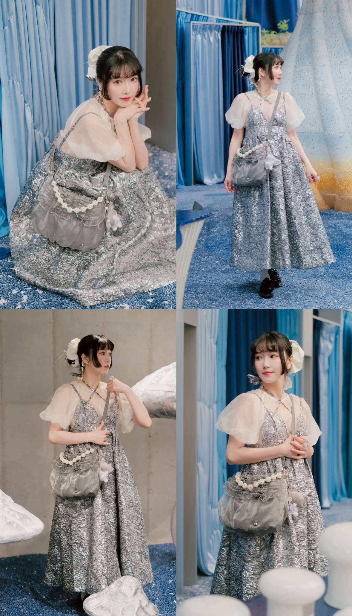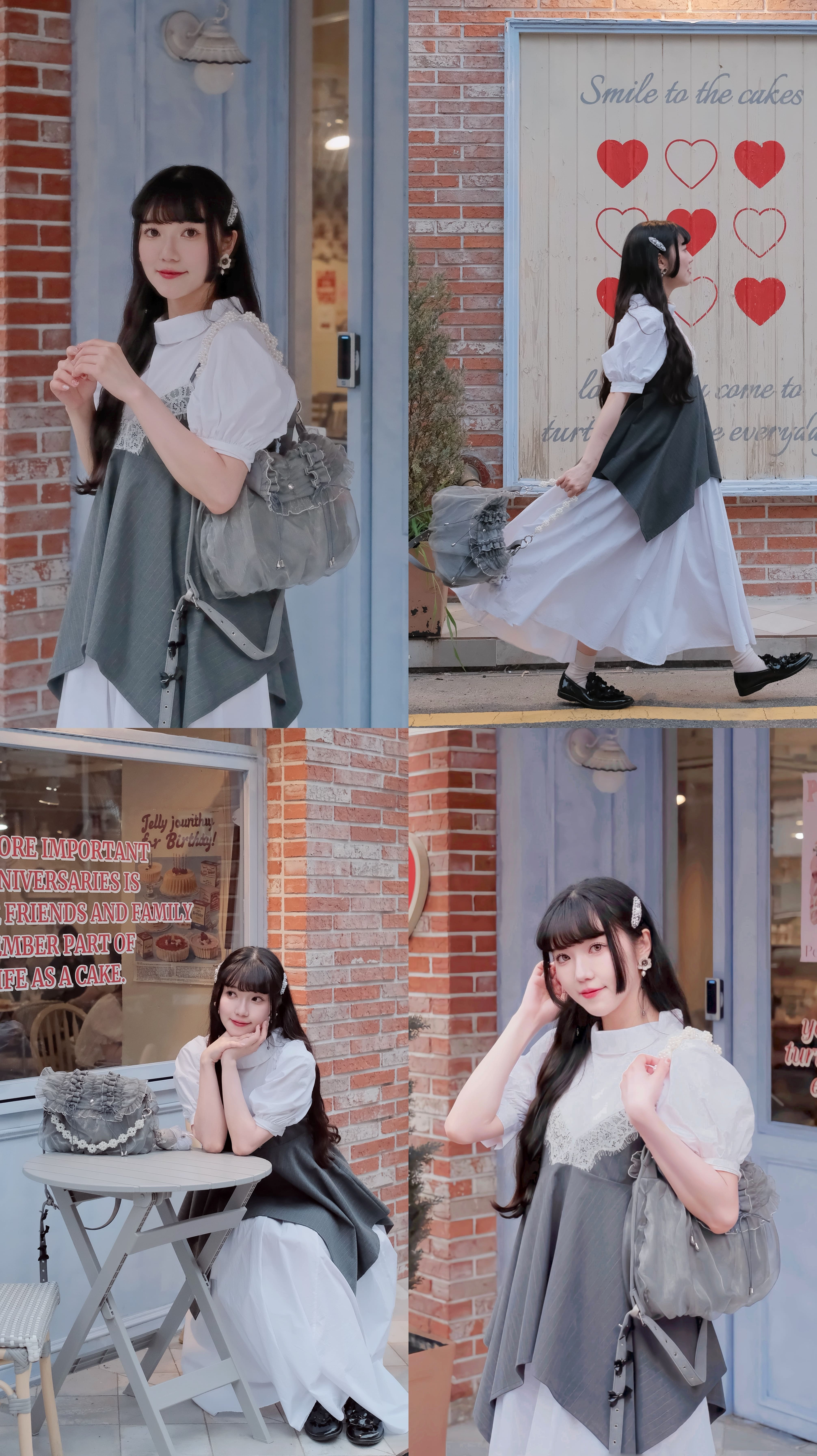 霧霧柔柔的灰色泡泡包,好適合這種有點涼、又有點甜的穿搭!