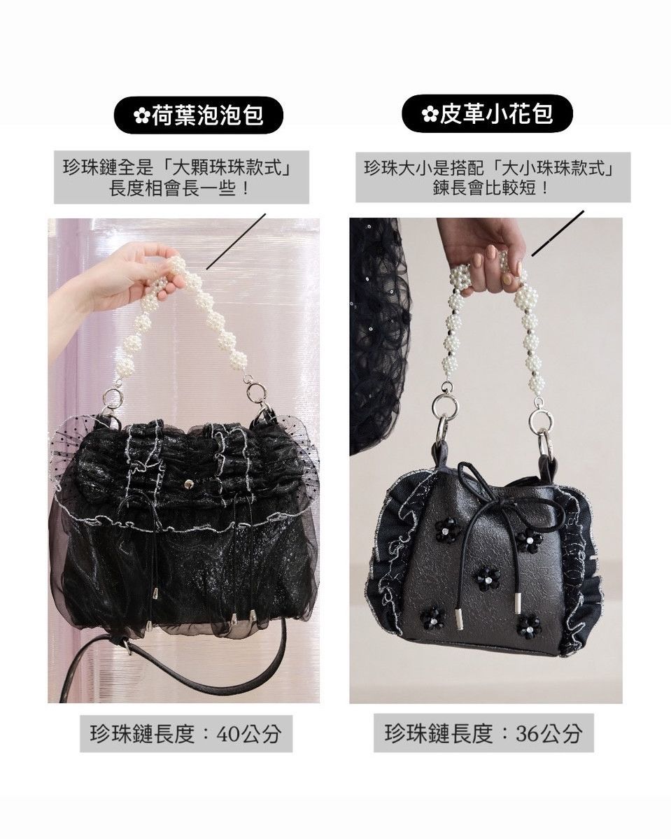 若偏好腋下背或手提的背法,建議選購「泡泡包+珍珠鏈組合」NT.7,300!珍珠鏈背起來會更舒服呦🫶🏻
