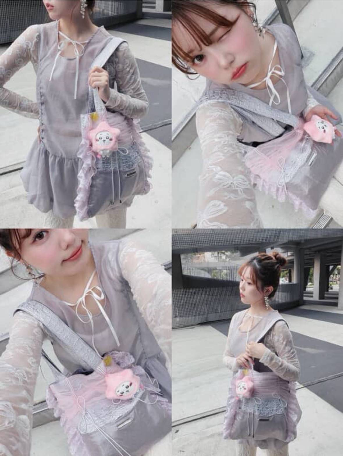 包型配上細細的皺褶薄紗,側邊疊著一層層荷葉邊,像是穿上了輕飄飄的小禮服~正面是透紗設計,佈滿波點或花卉刺繡,低調中藏著小驚喜✨