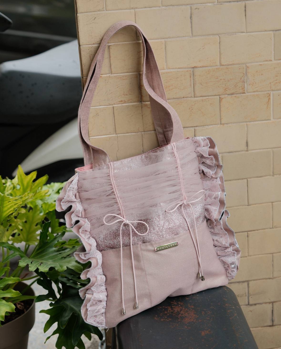靈感來自小禮服的優雅層次感!出門有時候小包包不夠放,就需要一個又美又能裝的手提袋,為穿搭加分啦!