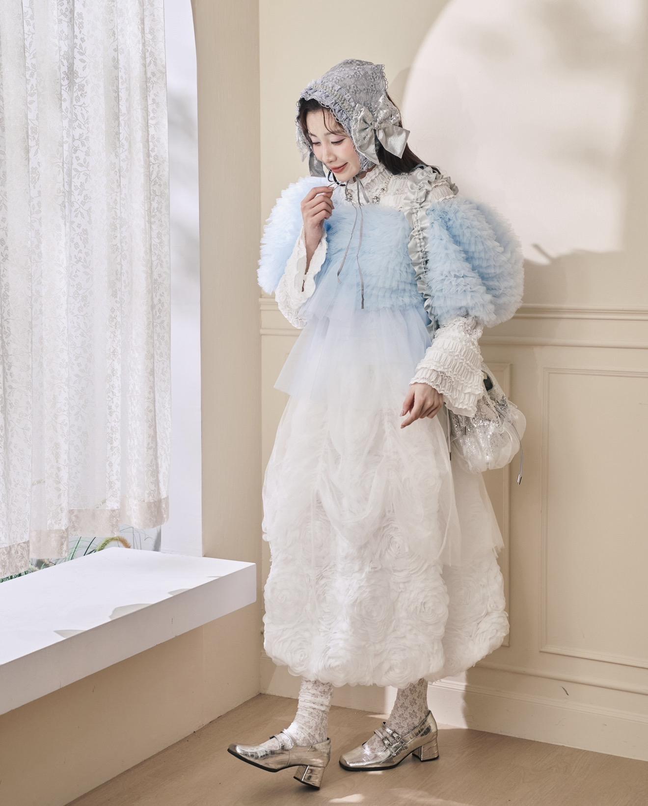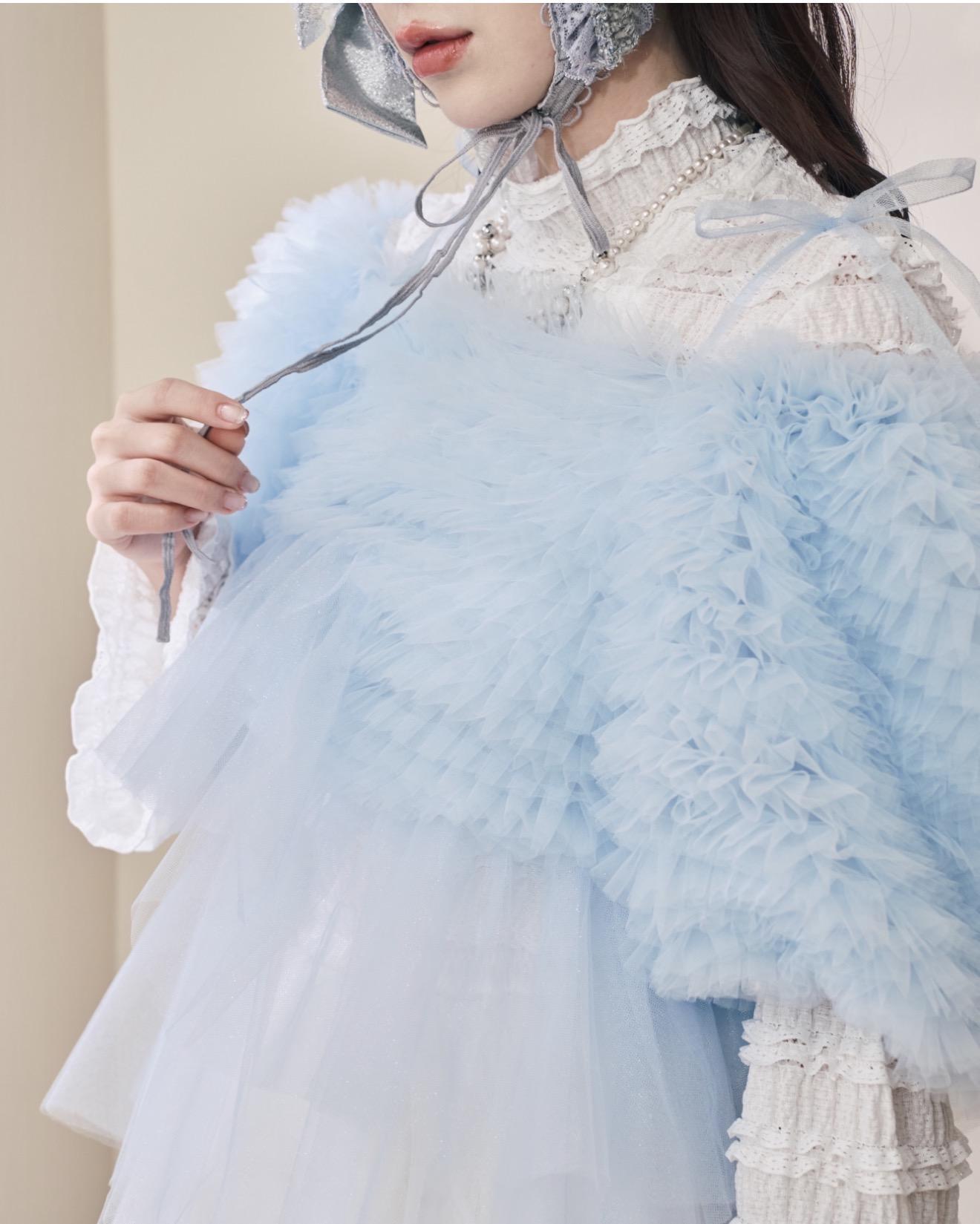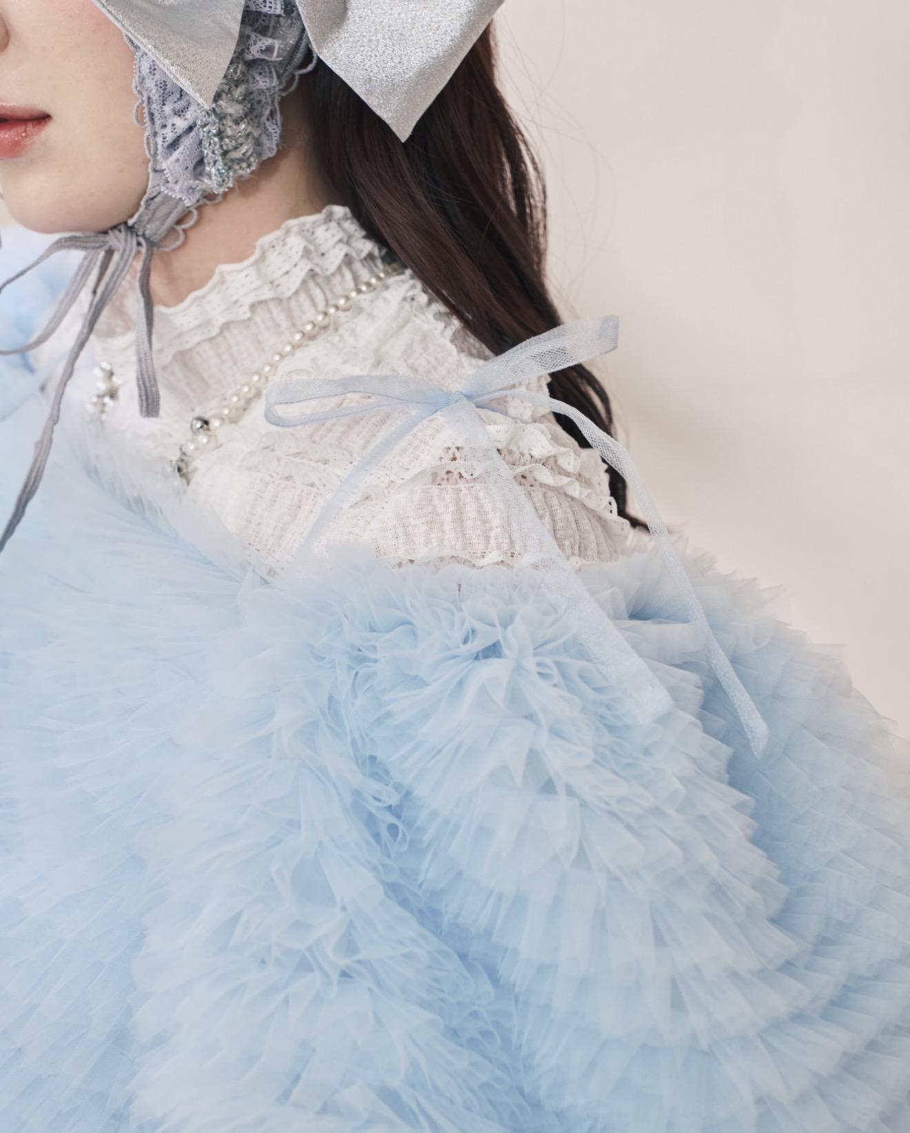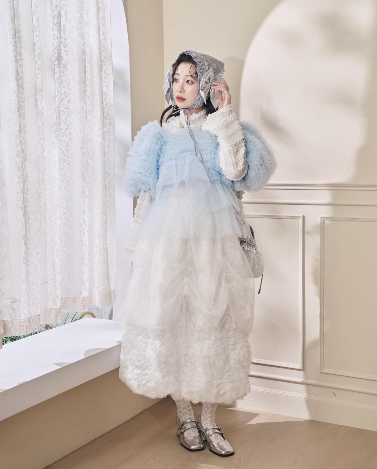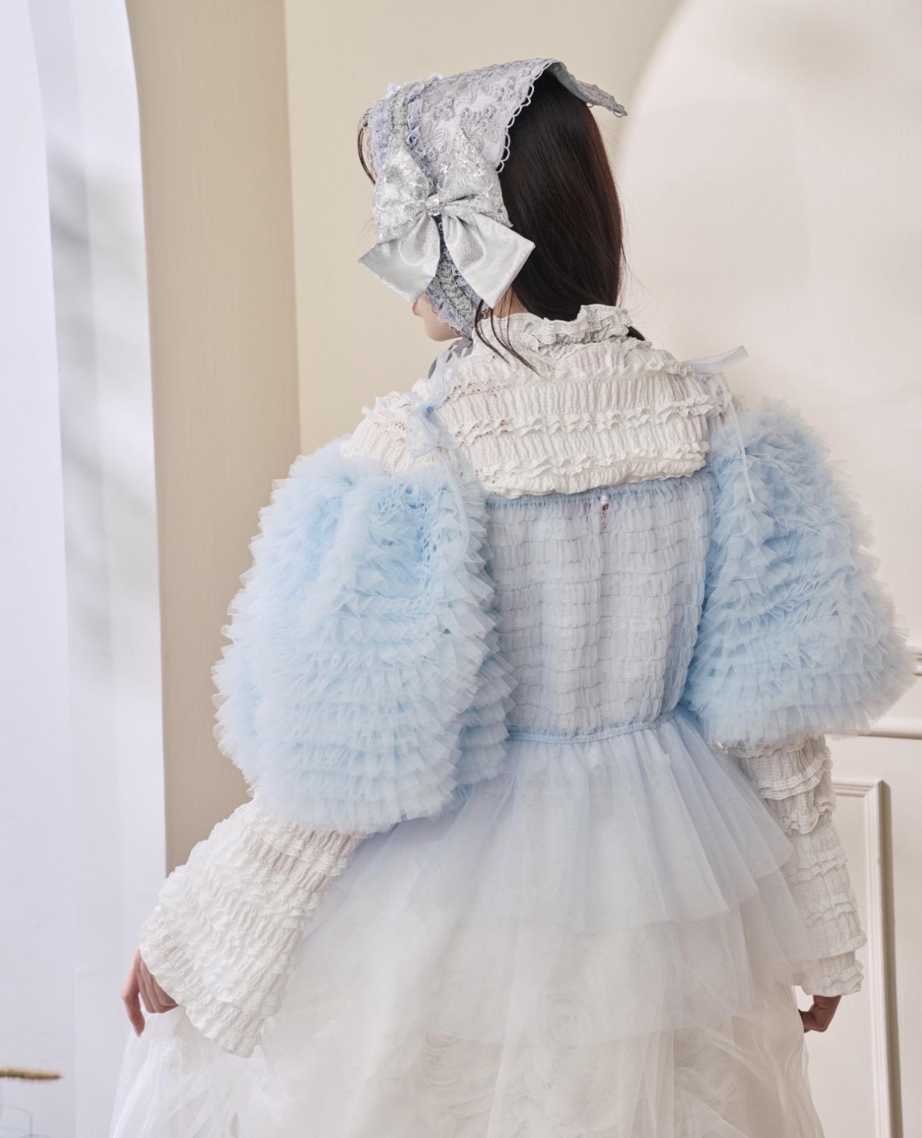 換來介紹浮誇又可愛的透紗上衣,這次用了兩款紗紗做搭配,有華麗一層層堆疊的波浪紗,還有比較素的透紗,兩種紗一層配一層非常協調又可愛!