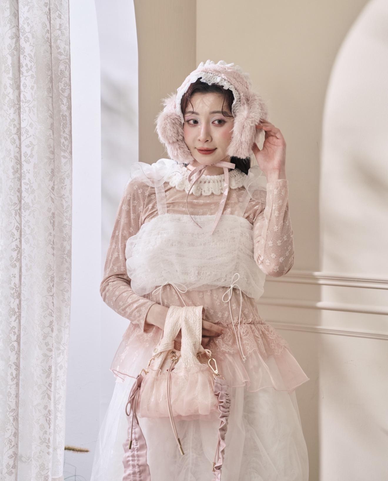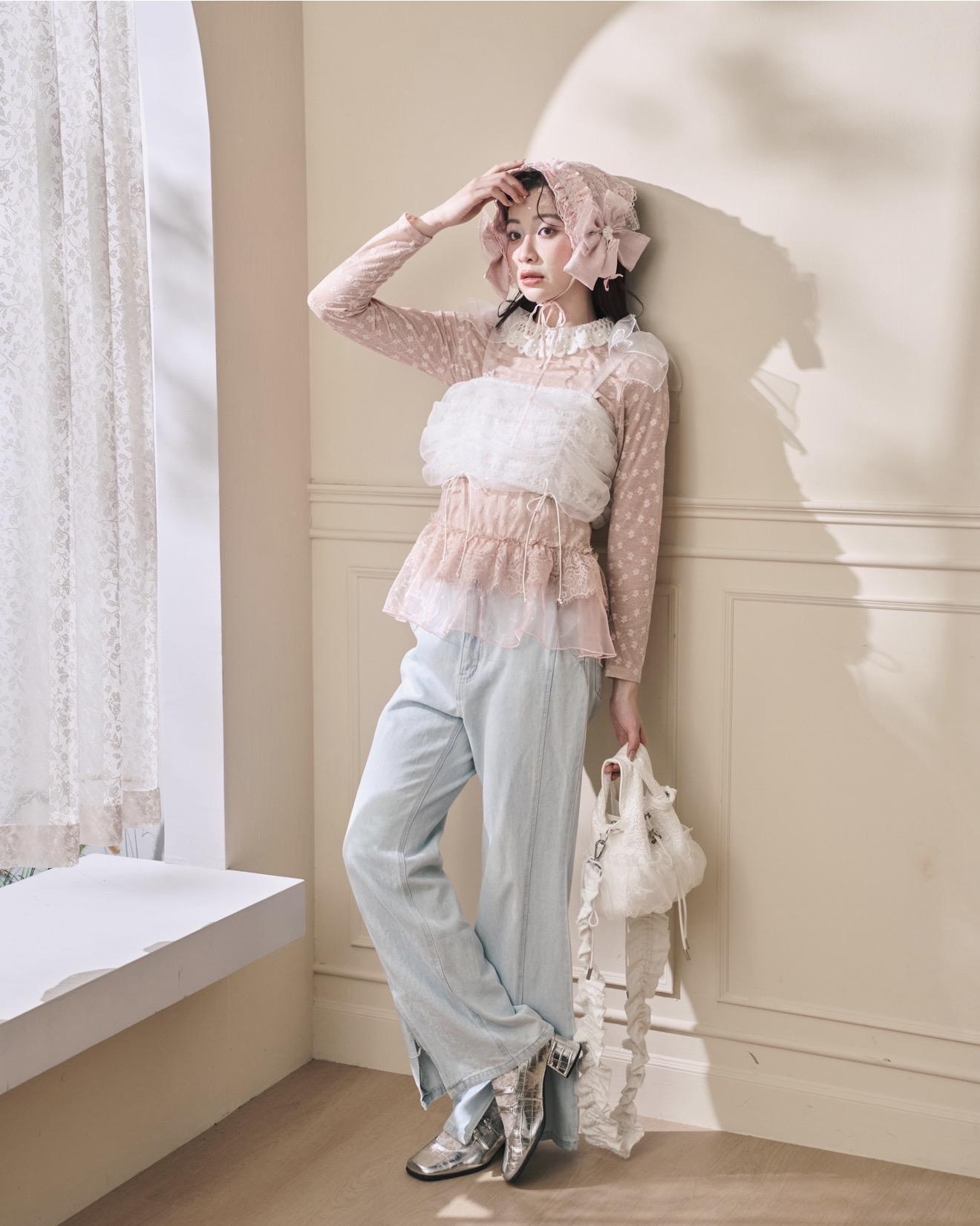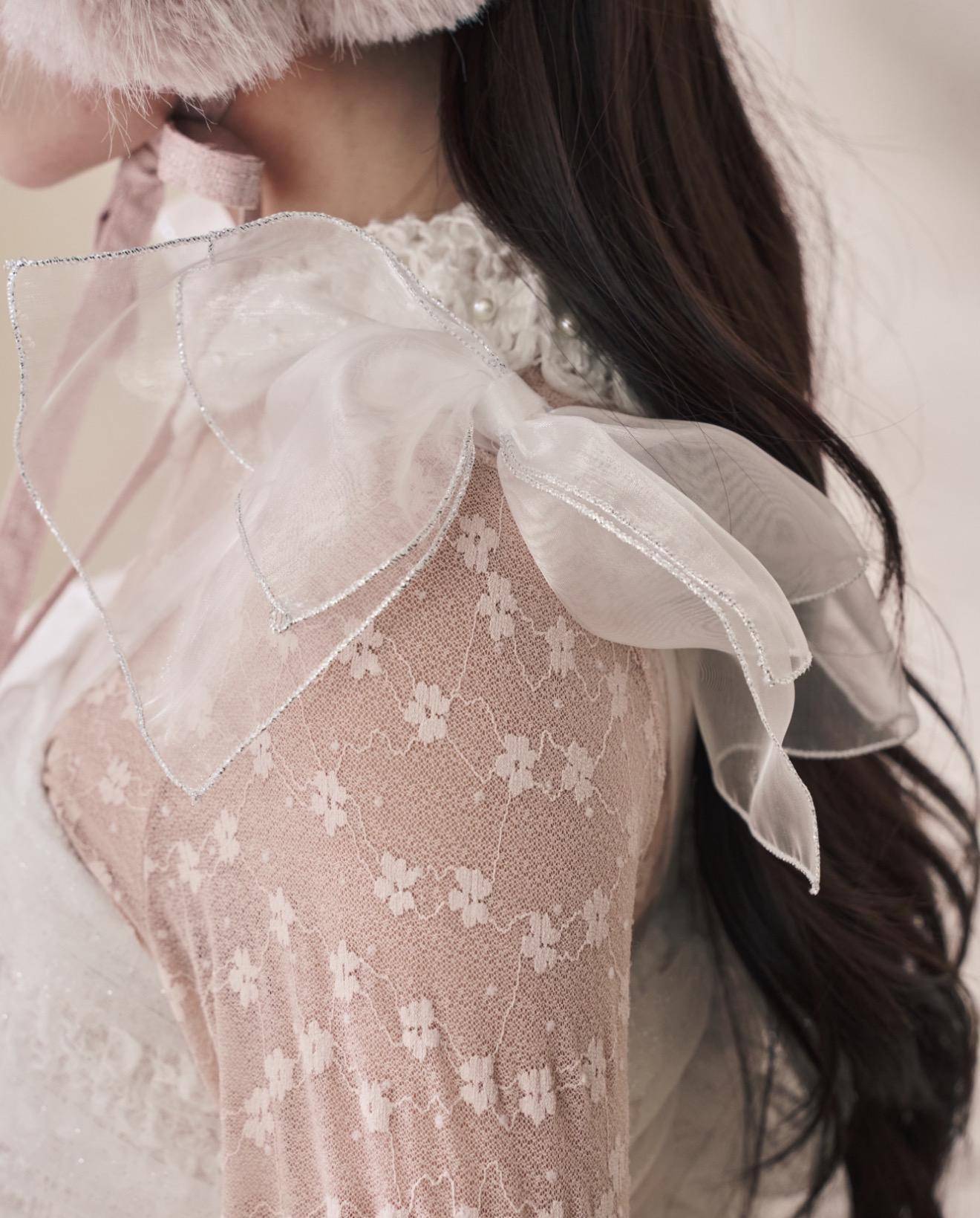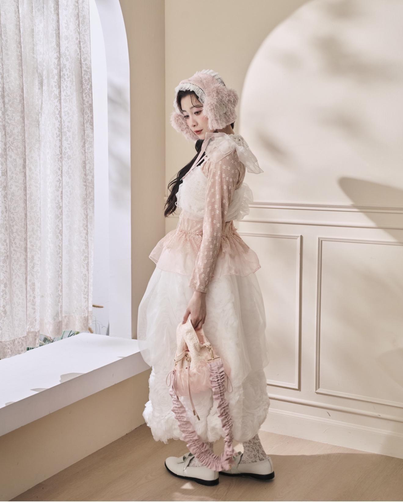 這次的蝴蝶結背心實在太太太可愛~底部是用皺摺造型布料超級細緻特別~搭配外層的透紗抽皺隱約透出裡面的漂亮精緻布料~