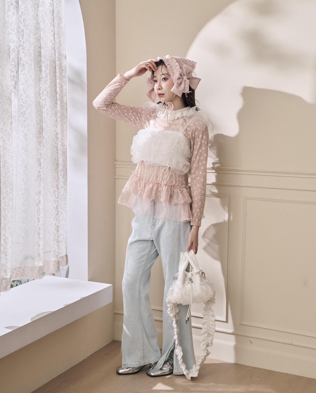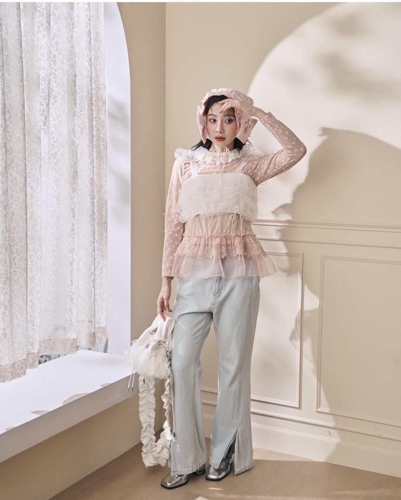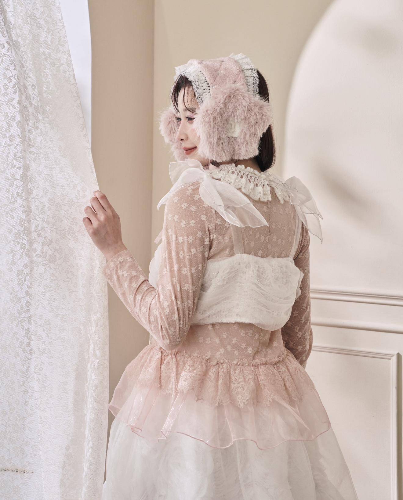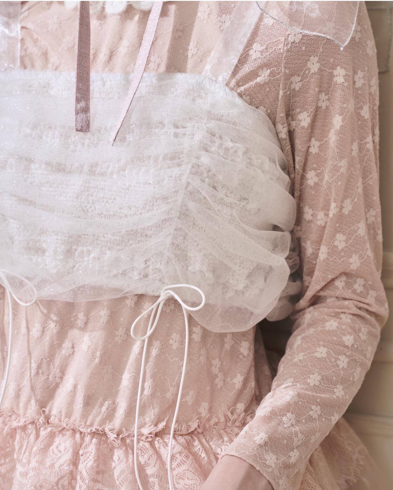 這次的蝴蝶結背心實在太太太可愛~底部是用皺摺造型布料超級細緻特別~搭配外層的透紗抽皺隱約透出裡面的漂亮精緻布料~