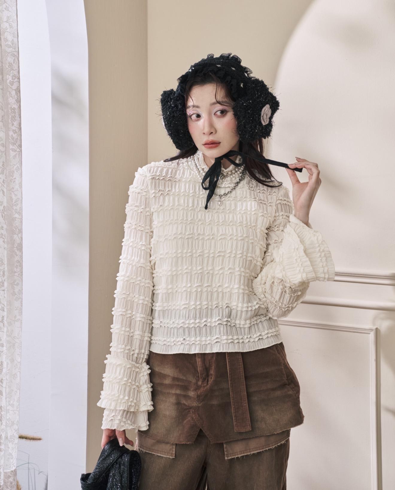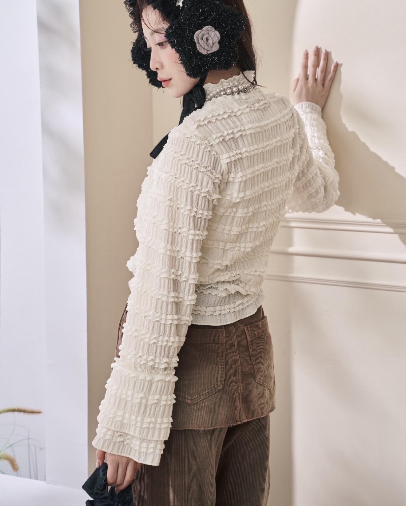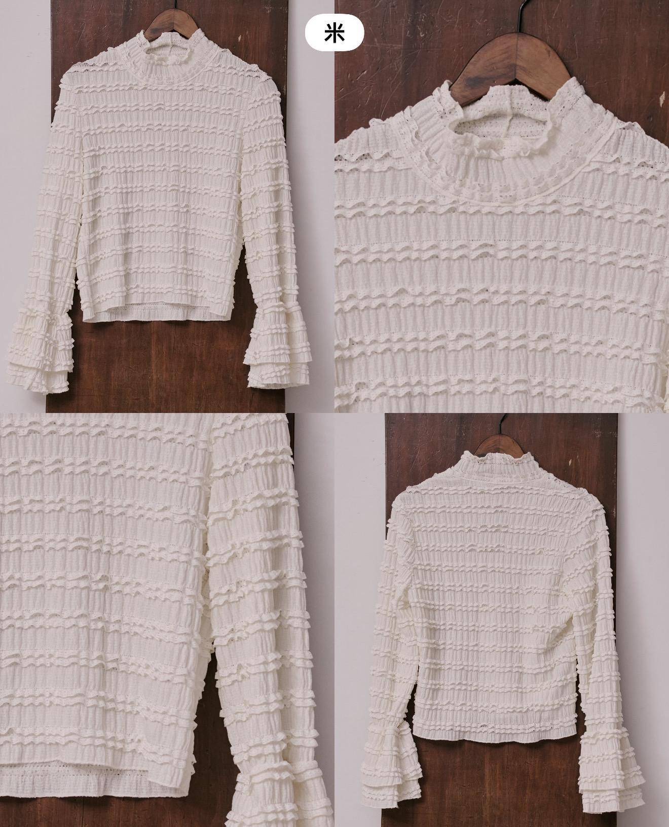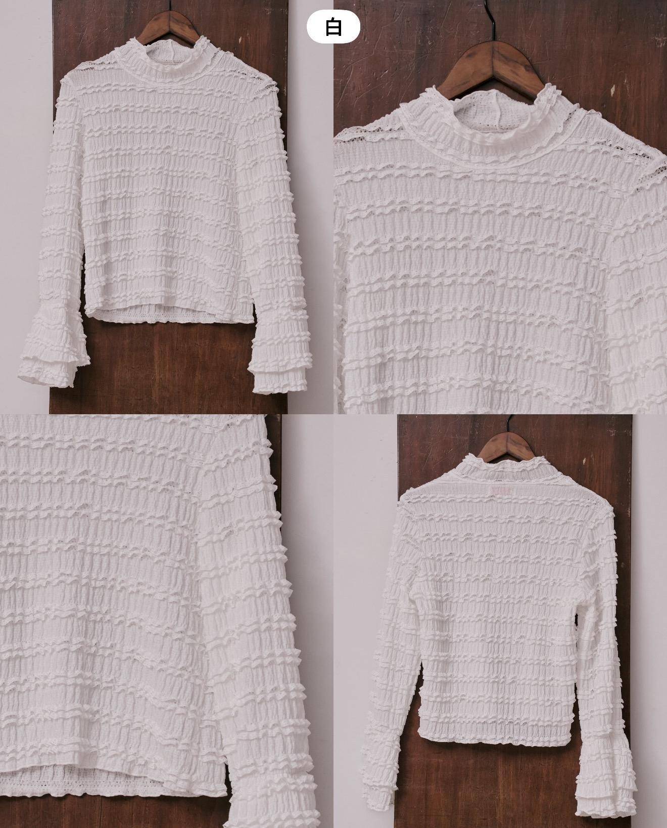 整體都像浪花一樣有層層堆疊超級有層次💓袖子設計也是偏寬鬆直筒手臂絕對顯瘦!不管是夏天還是冬天都可以輕鬆搭配的單品!