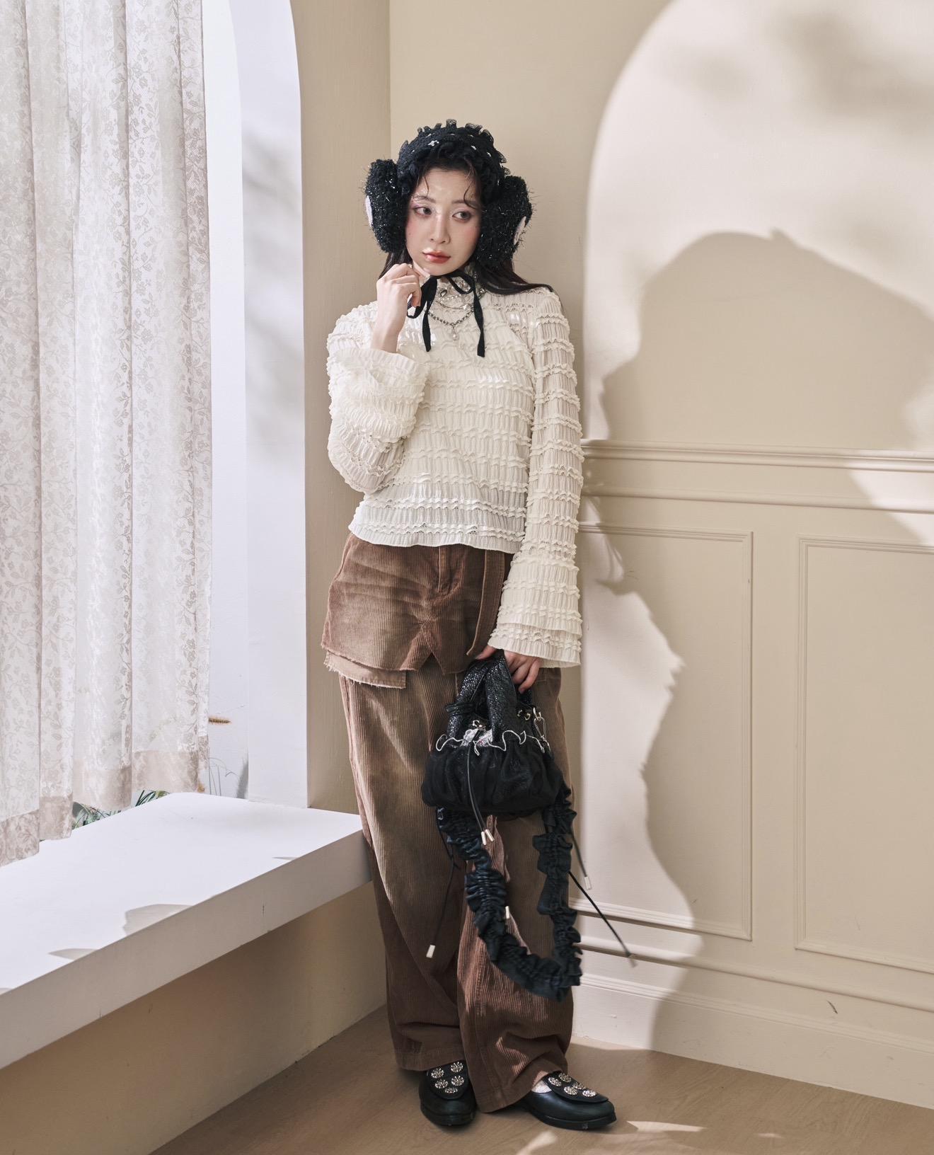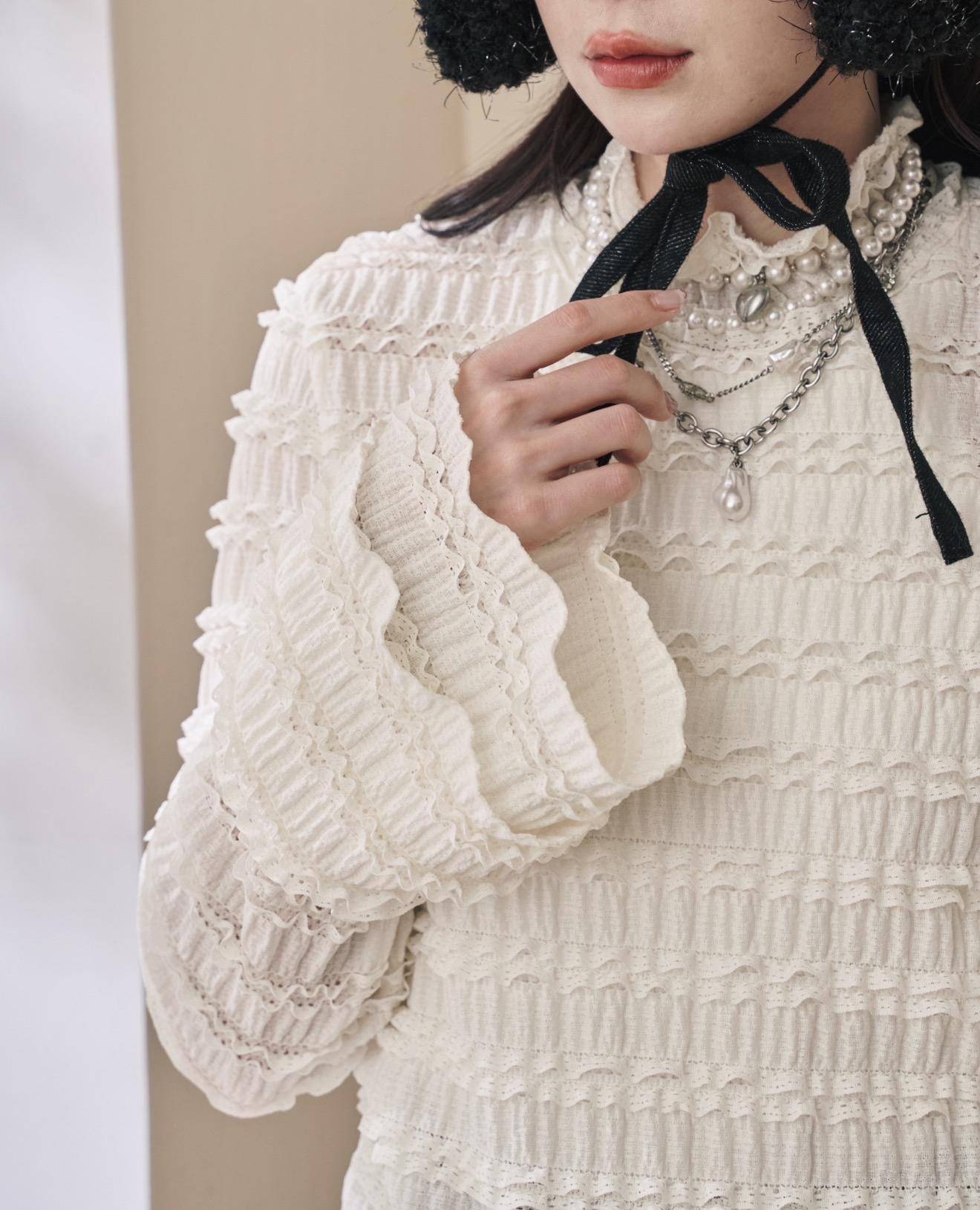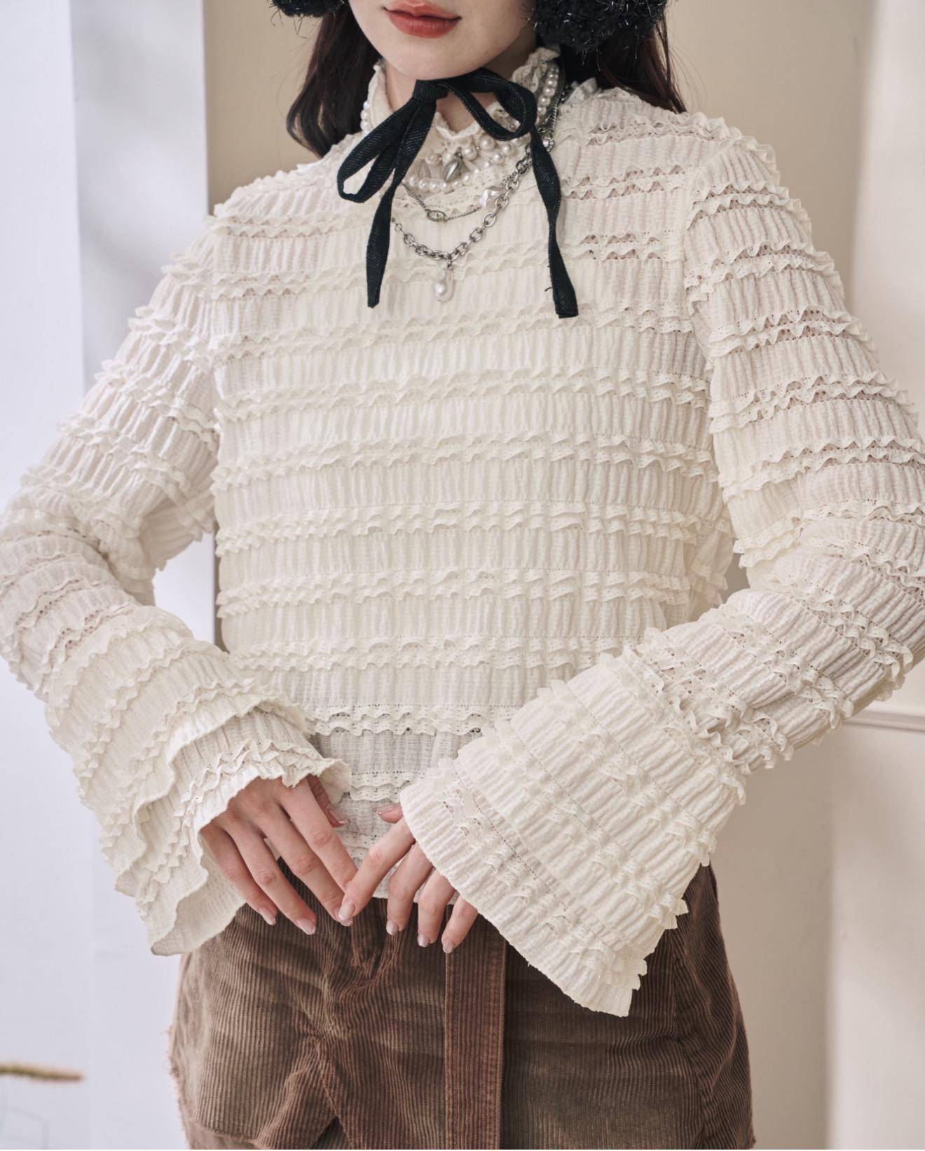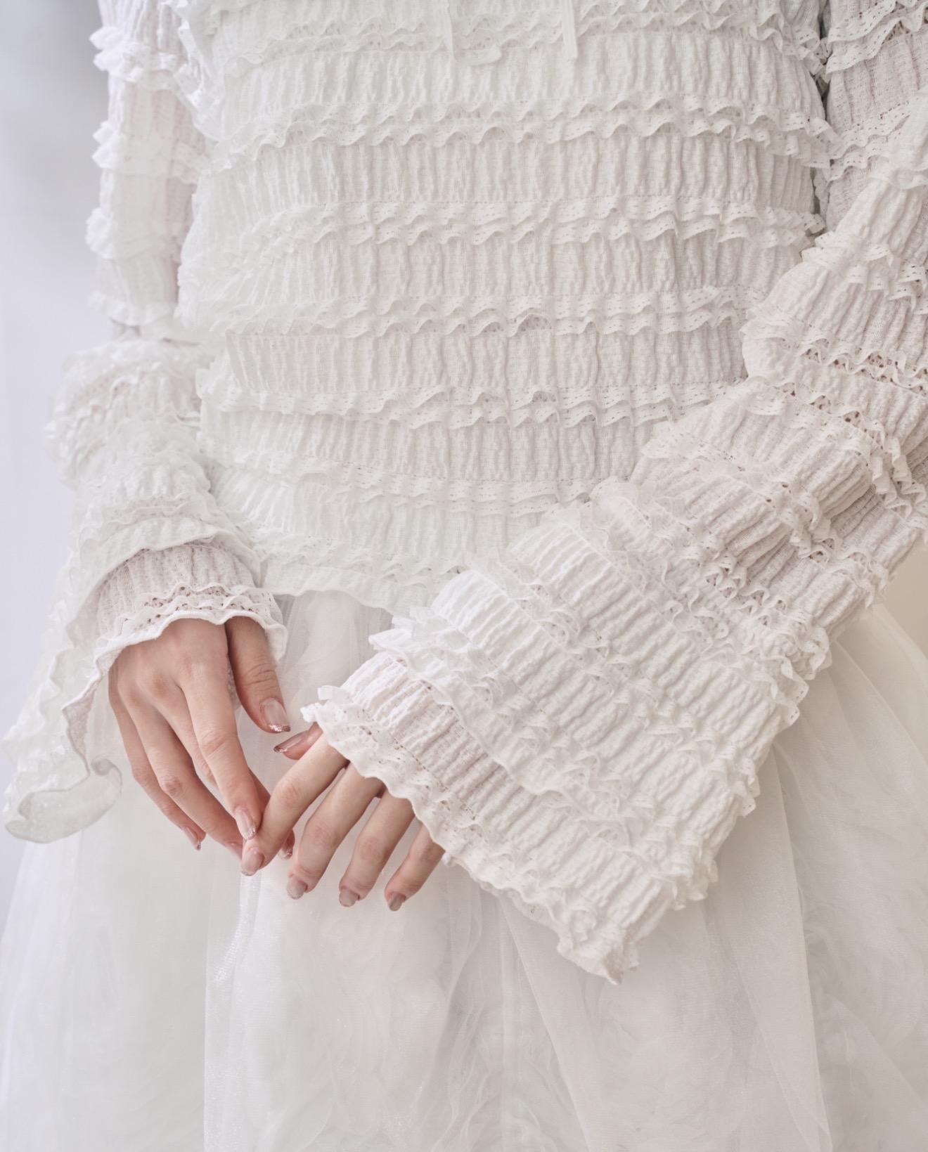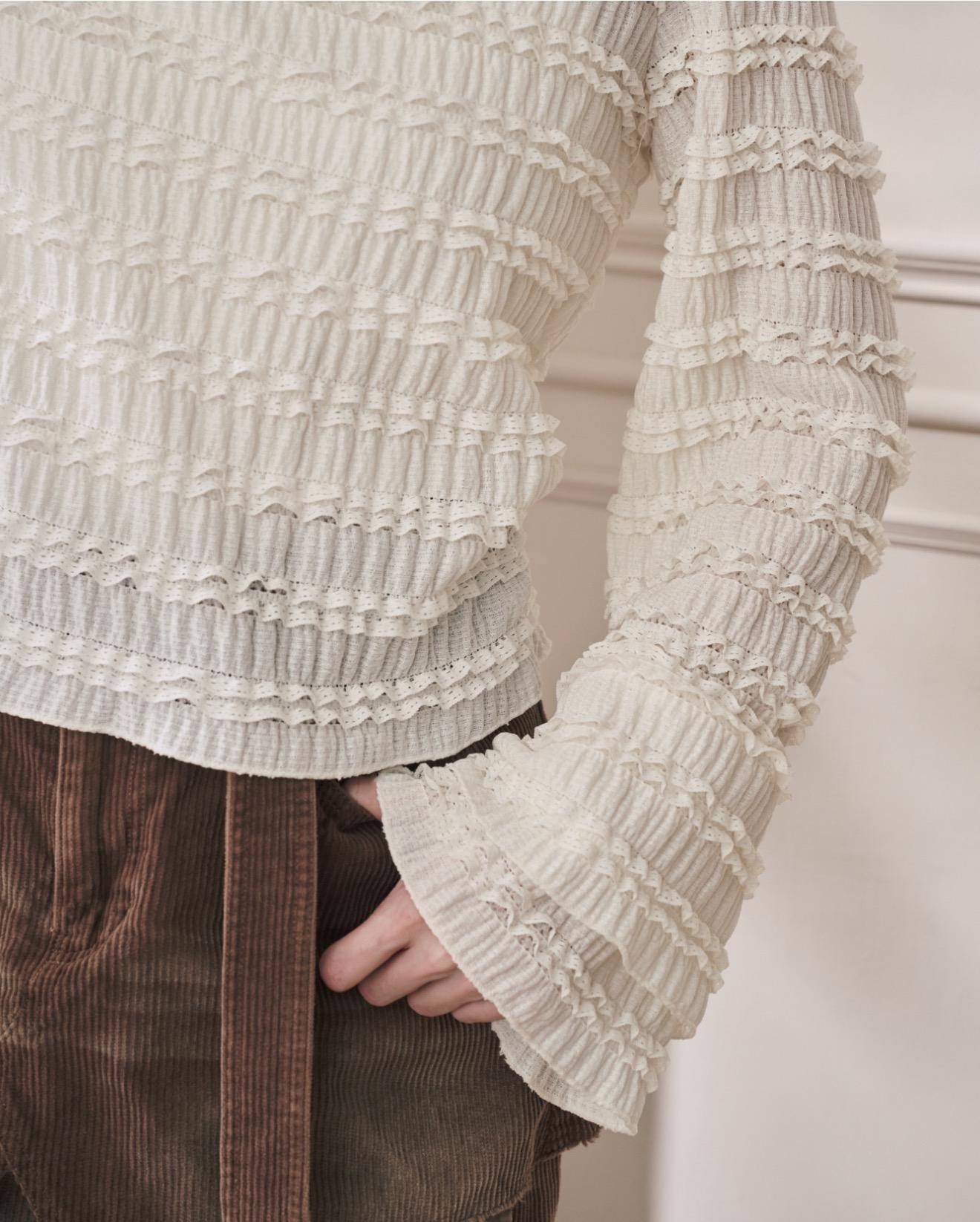 整體都像浪花一樣有層層堆疊超級有層次💓袖子設計也是偏寬鬆直筒手臂絕對顯瘦!不管是夏天還是冬天都可以輕鬆搭配的單品!