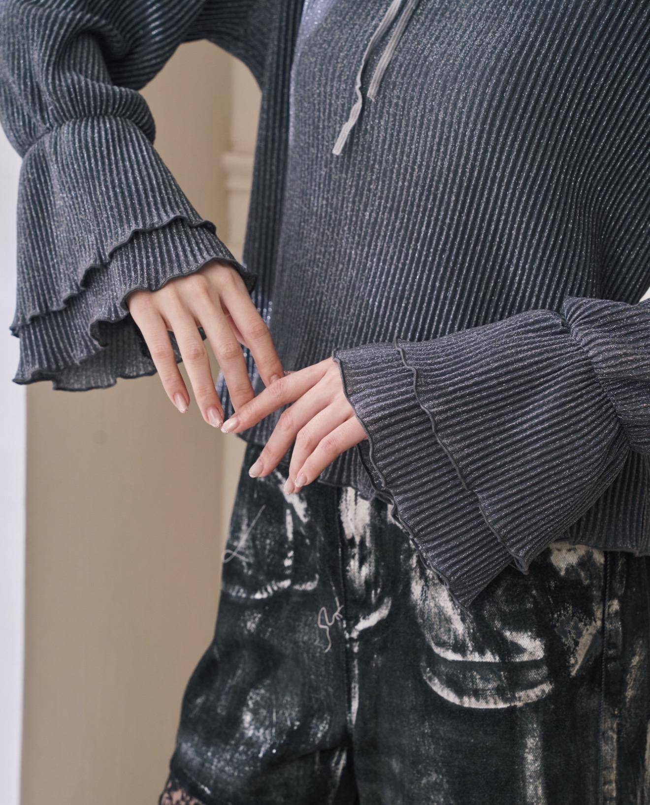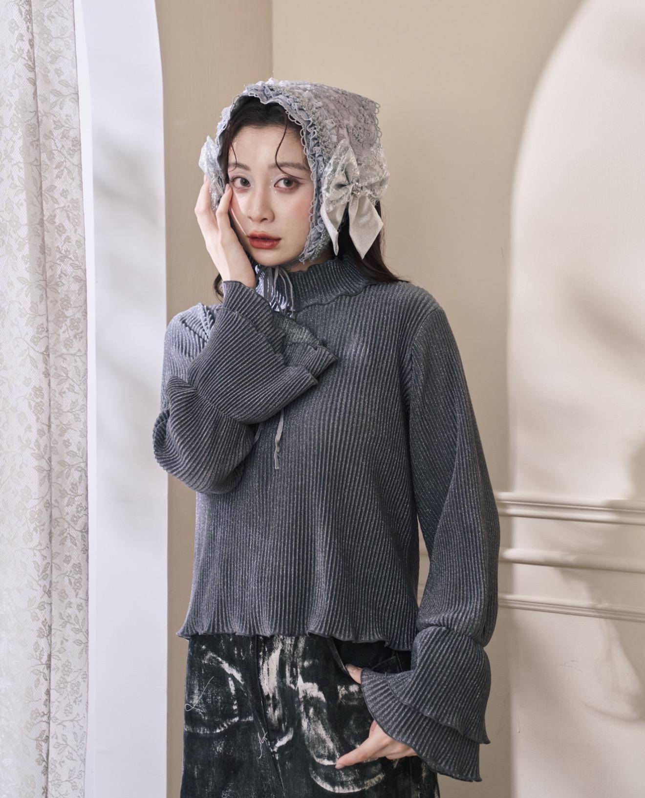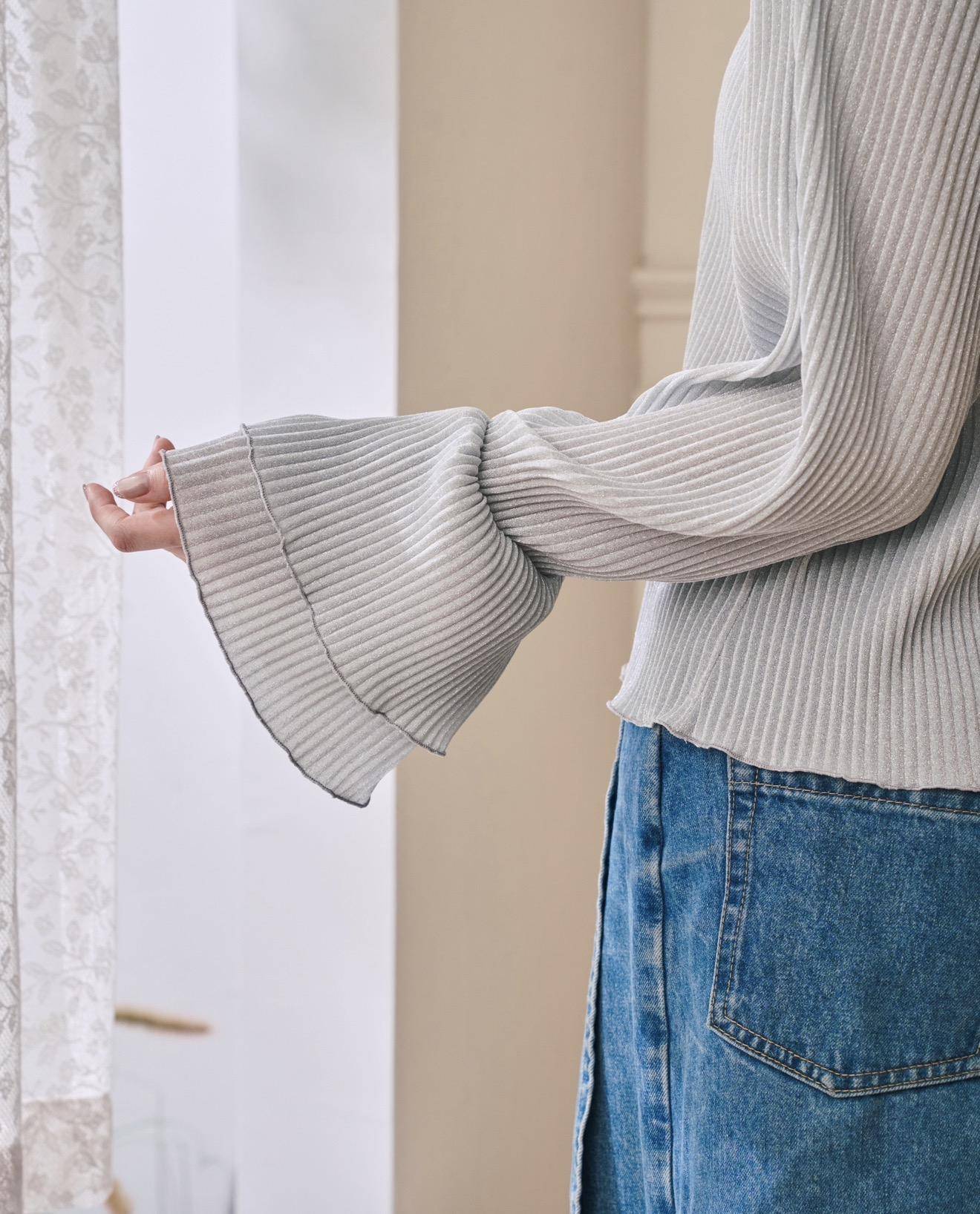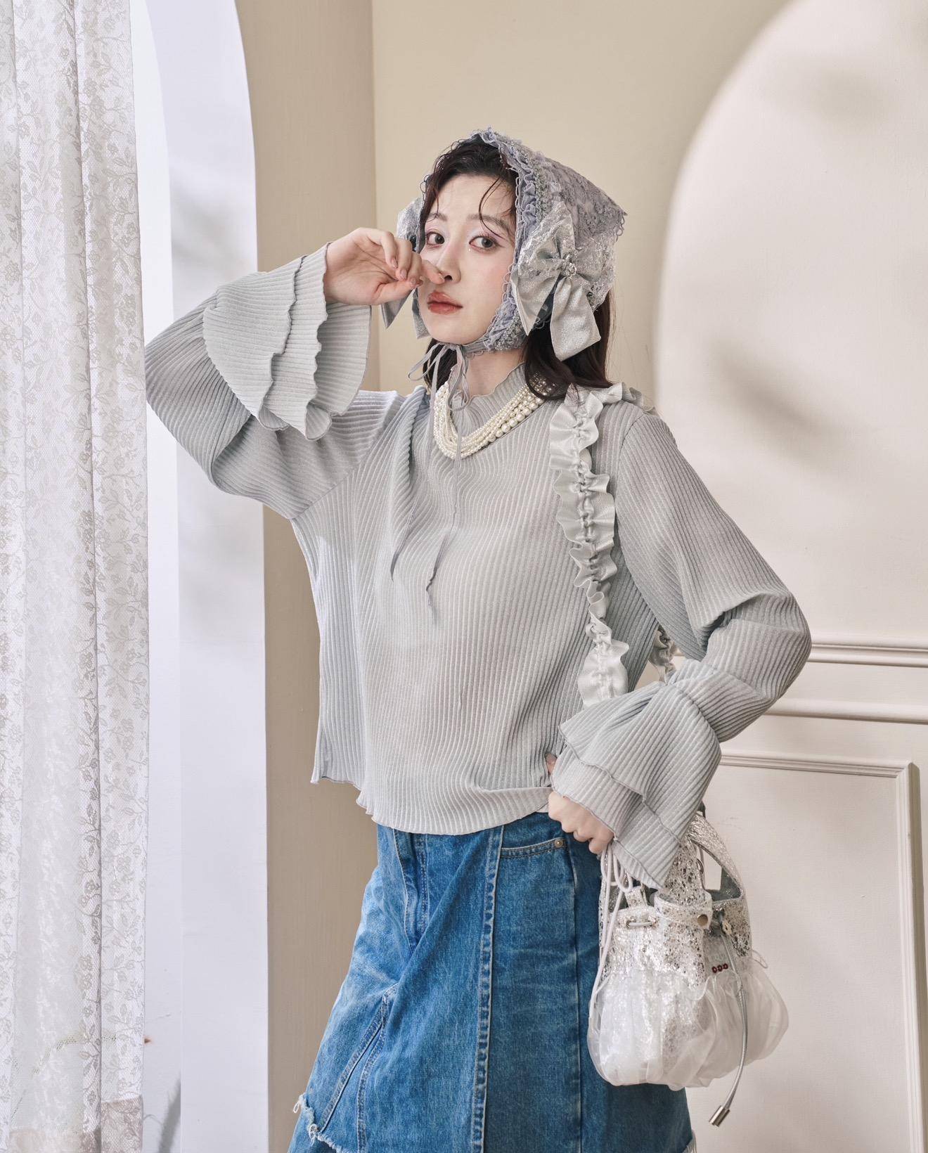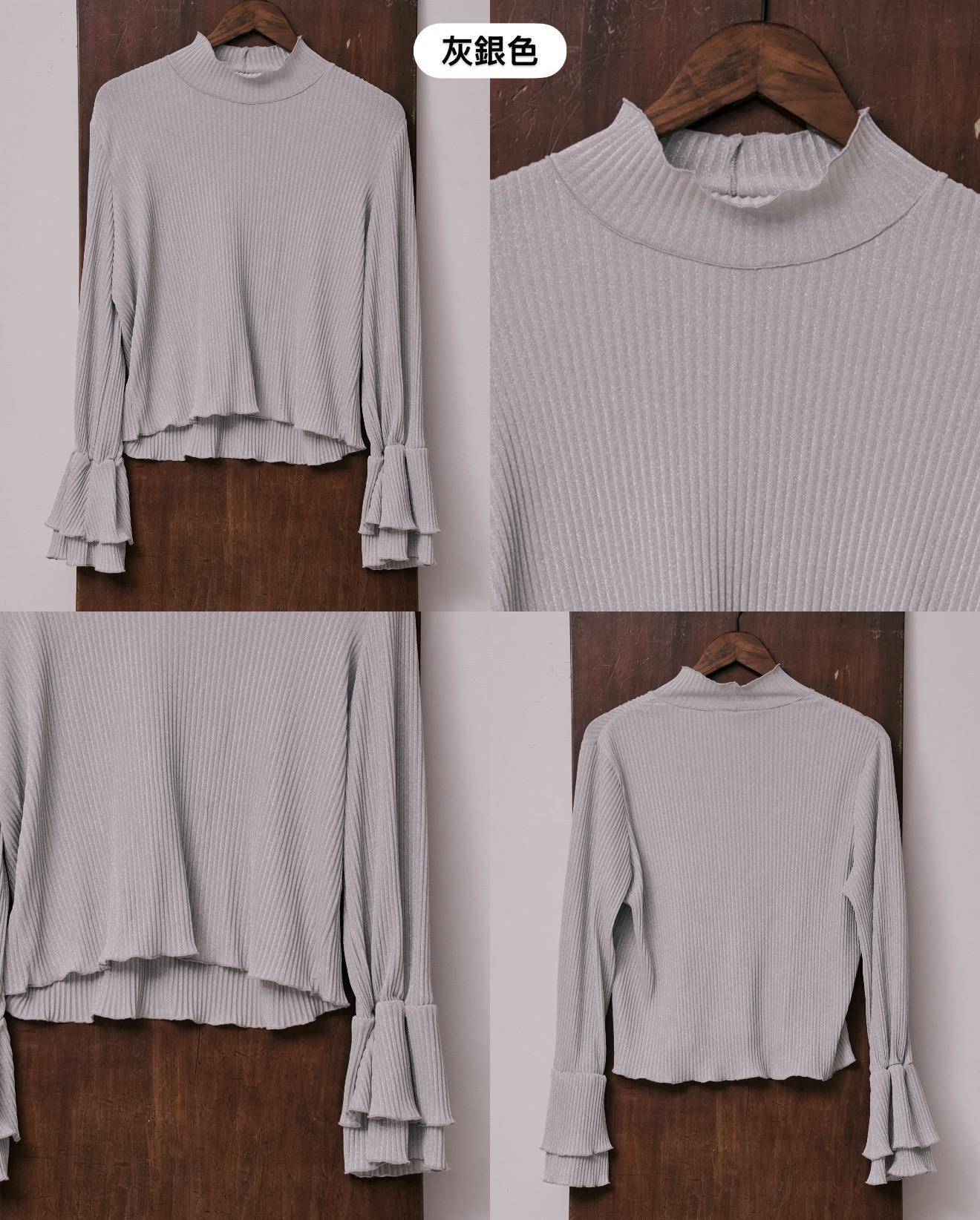 (灰銀色)立體壓紋喇叭袖內搭: