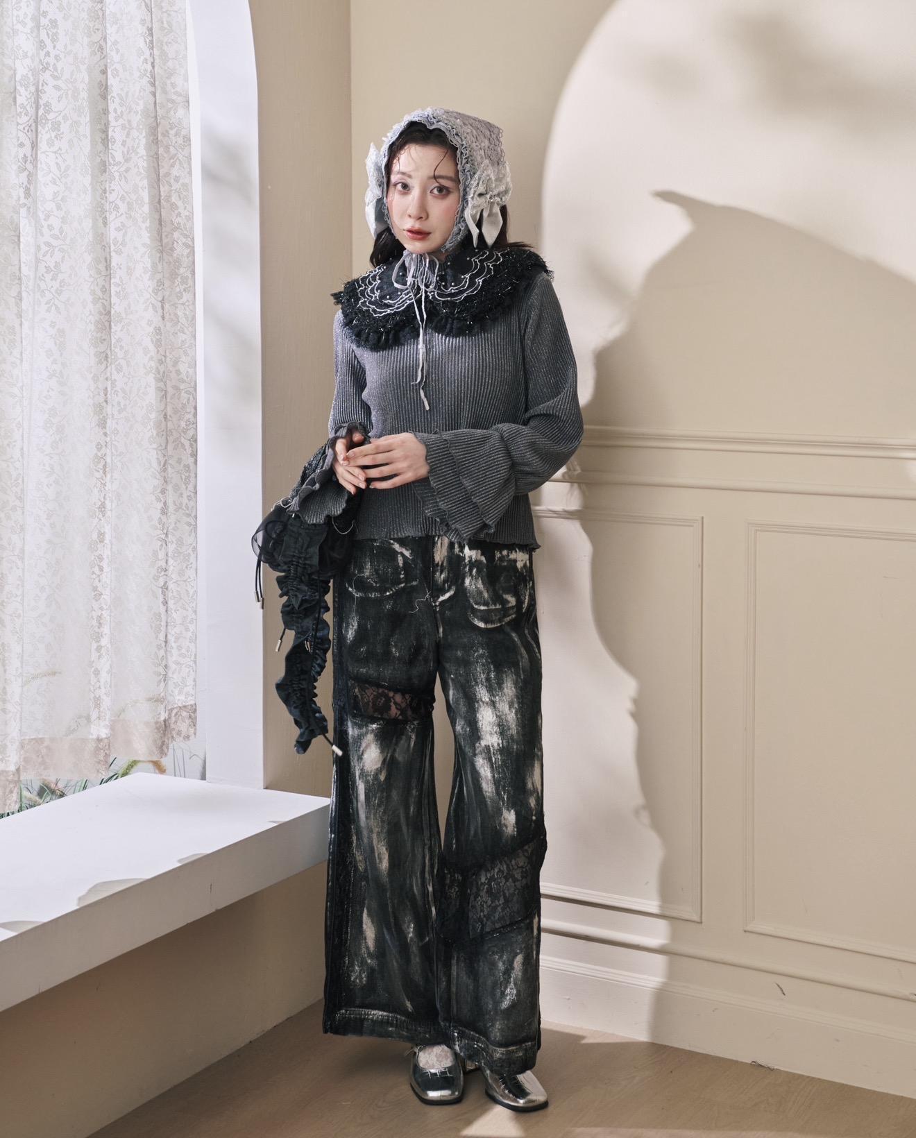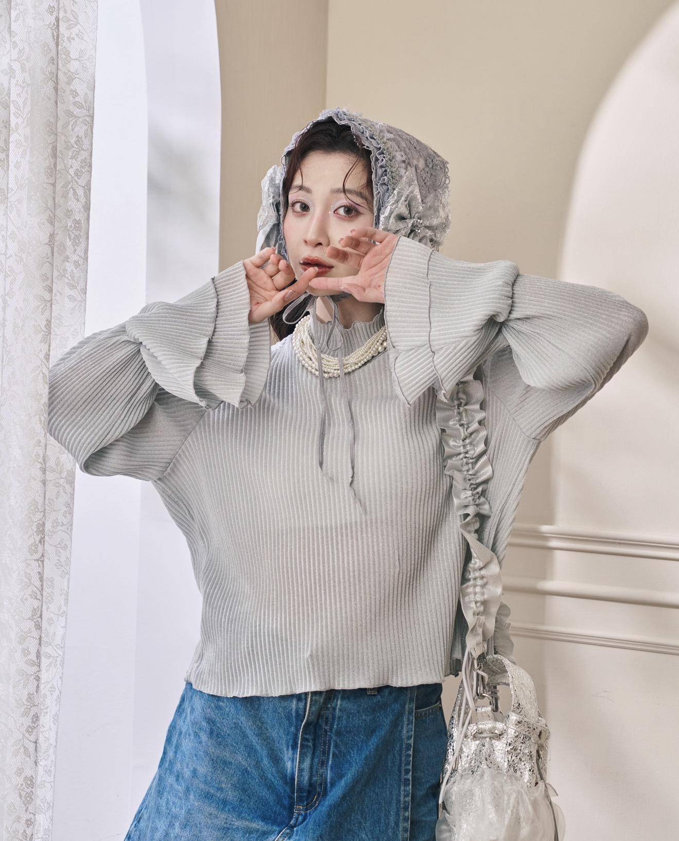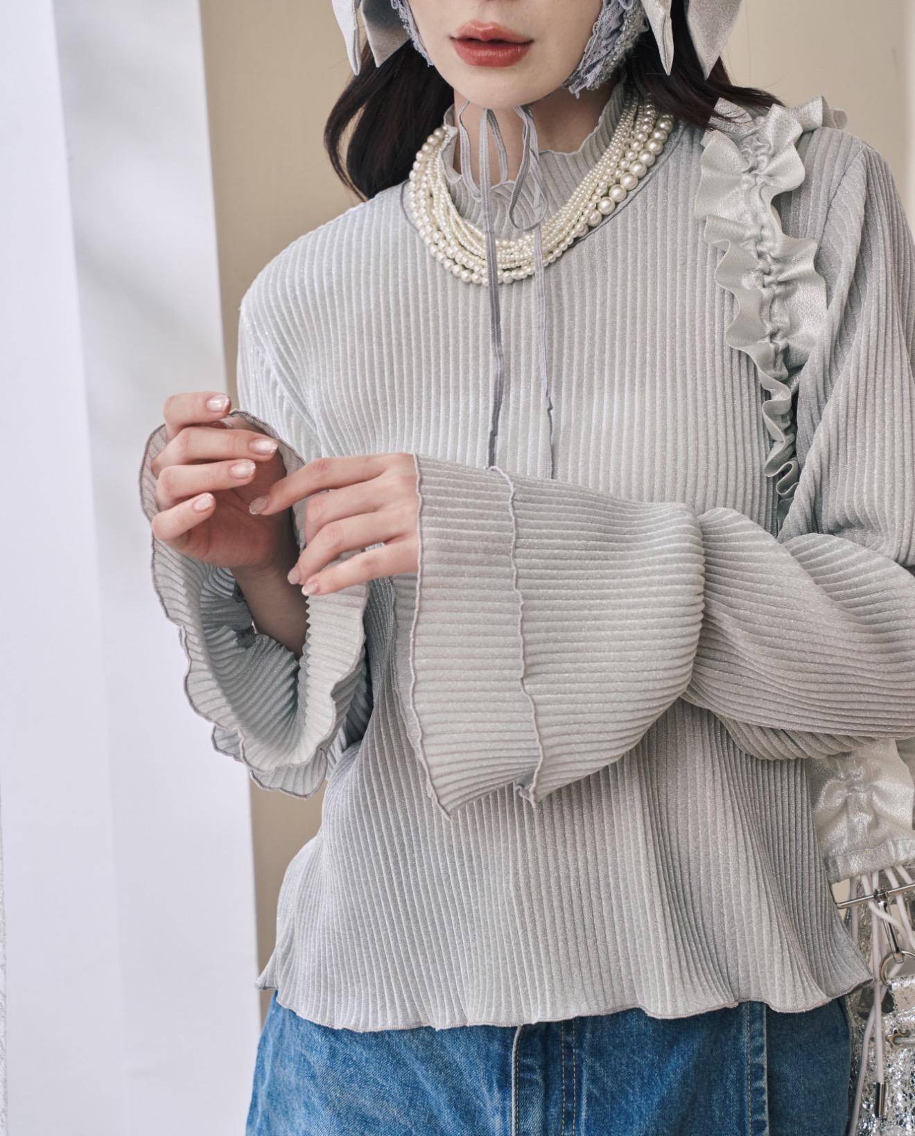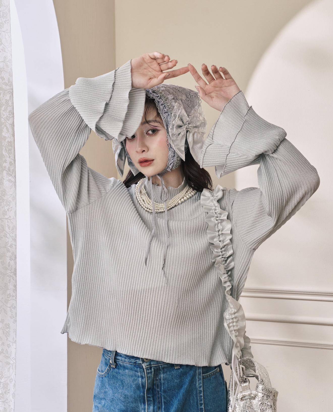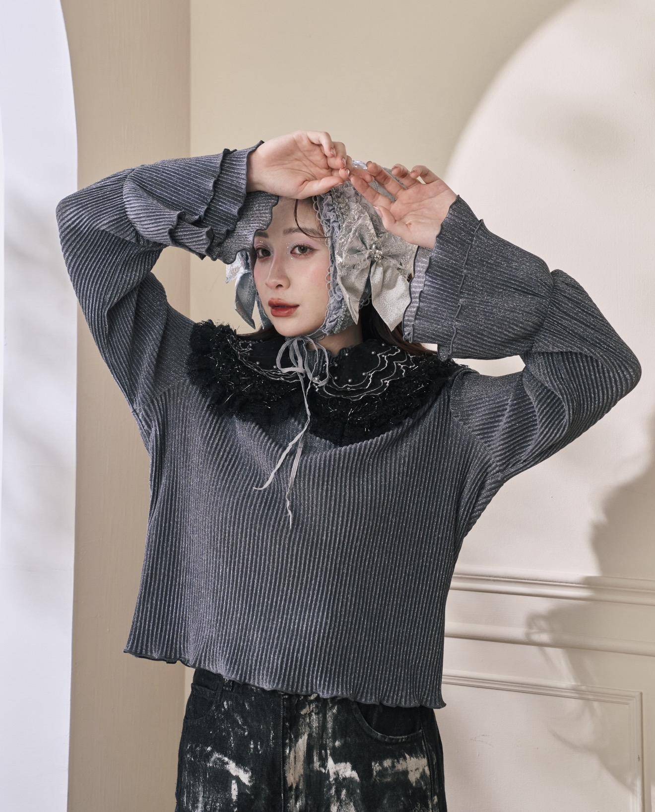 (灰銀色)立體壓紋喇叭袖內搭: