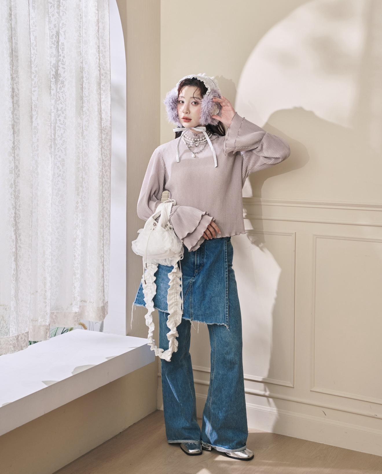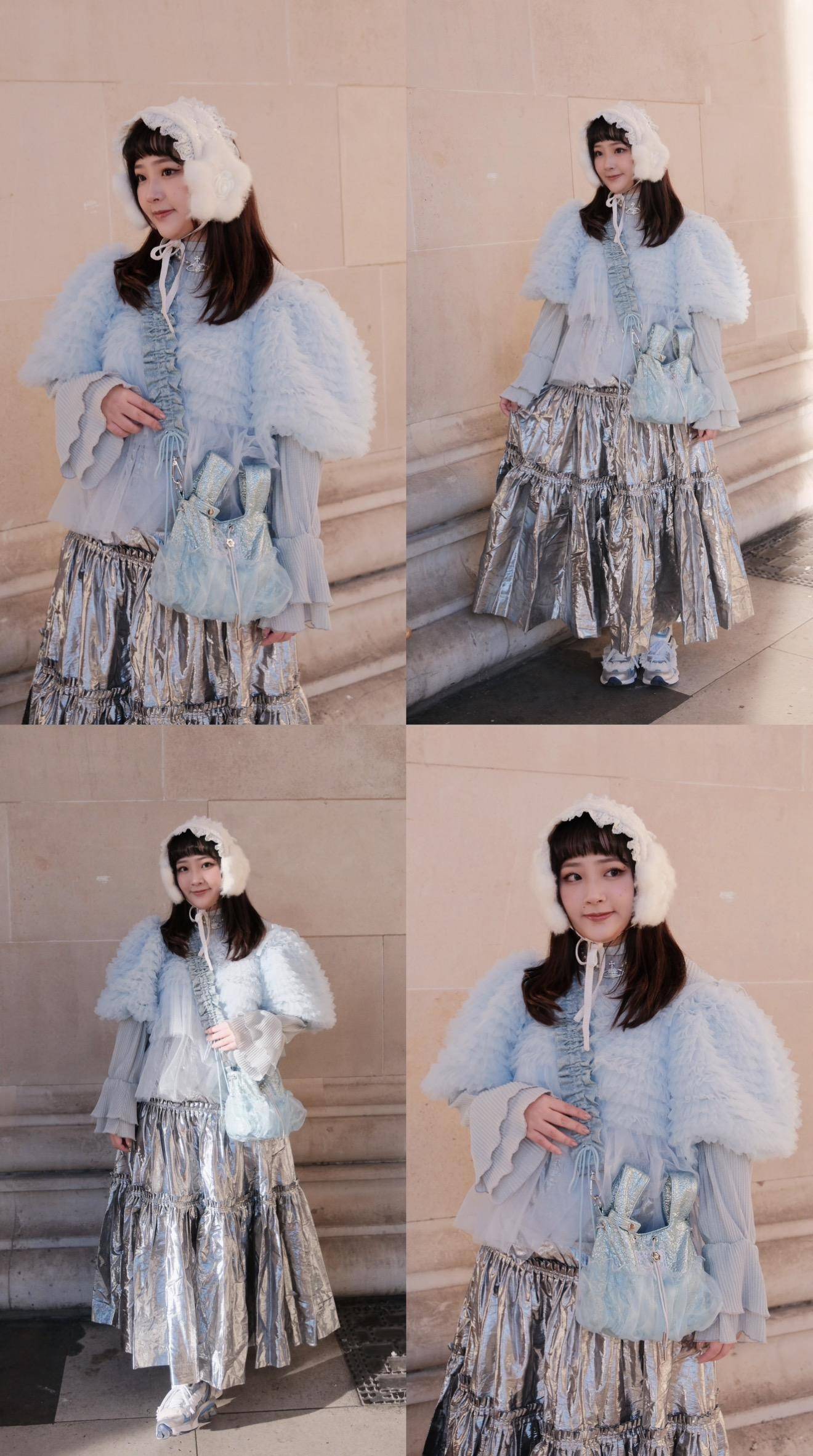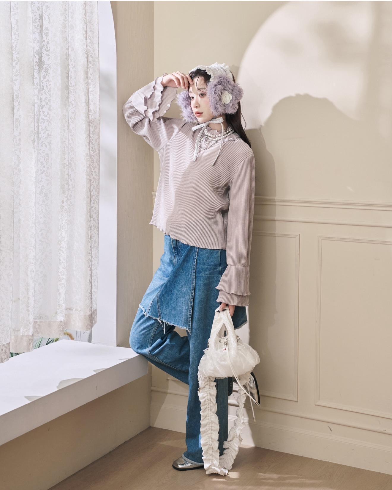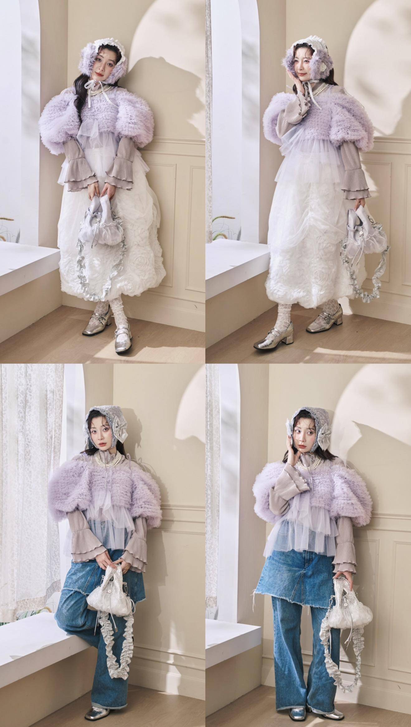 少女的淡色紫💜為整體穿搭加了亮點,溫柔又不會太搶戲!!