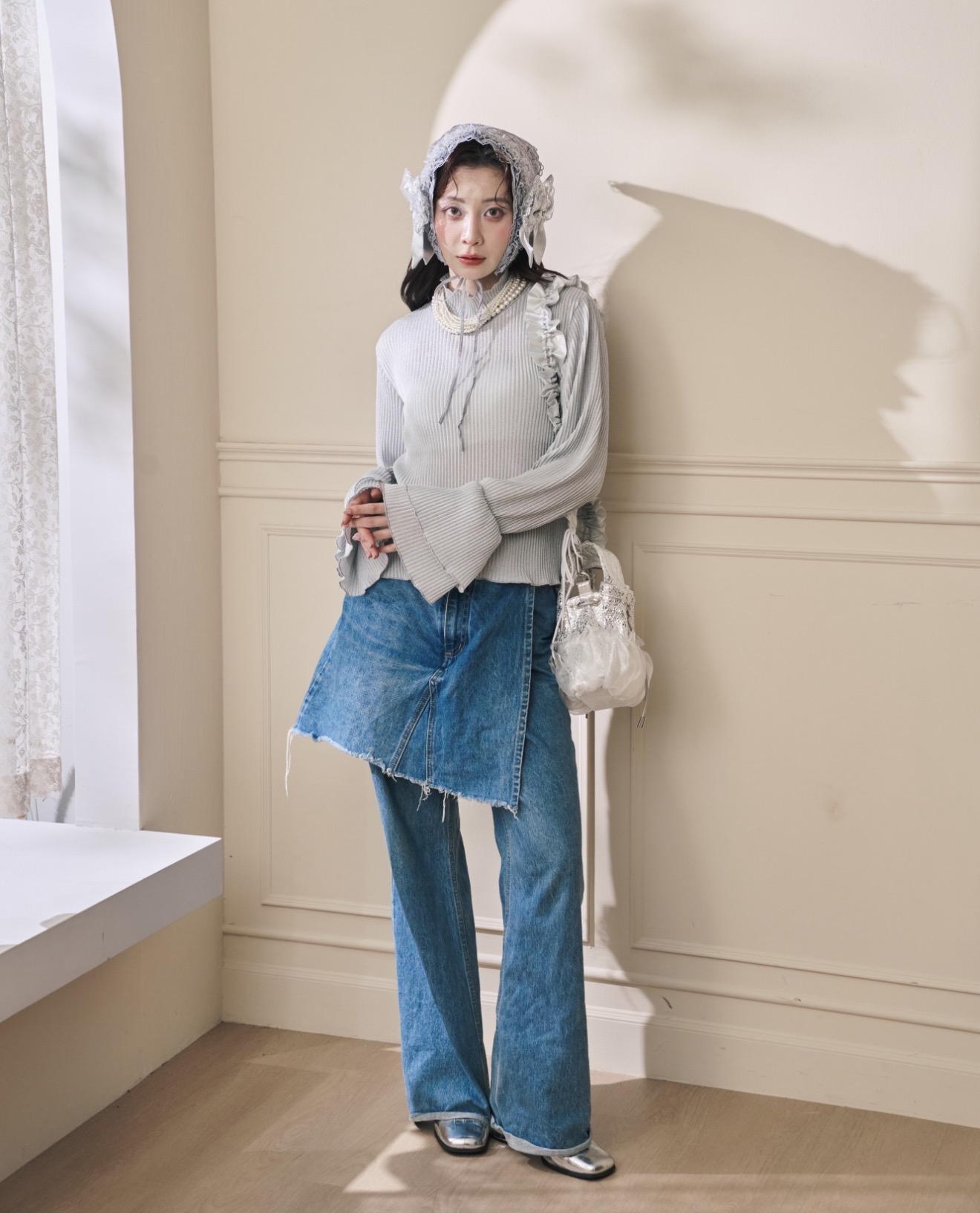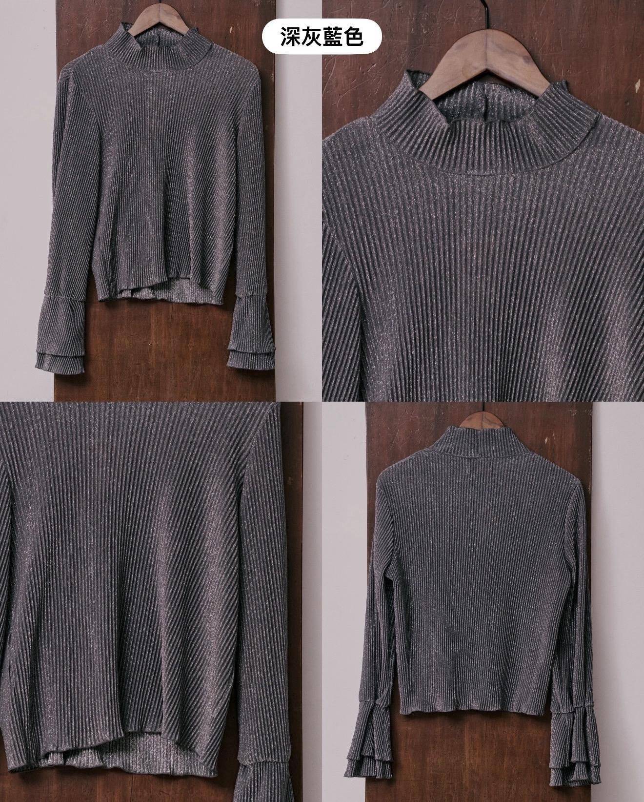 (深灰藍色)立體壓紋喇叭袖內搭: