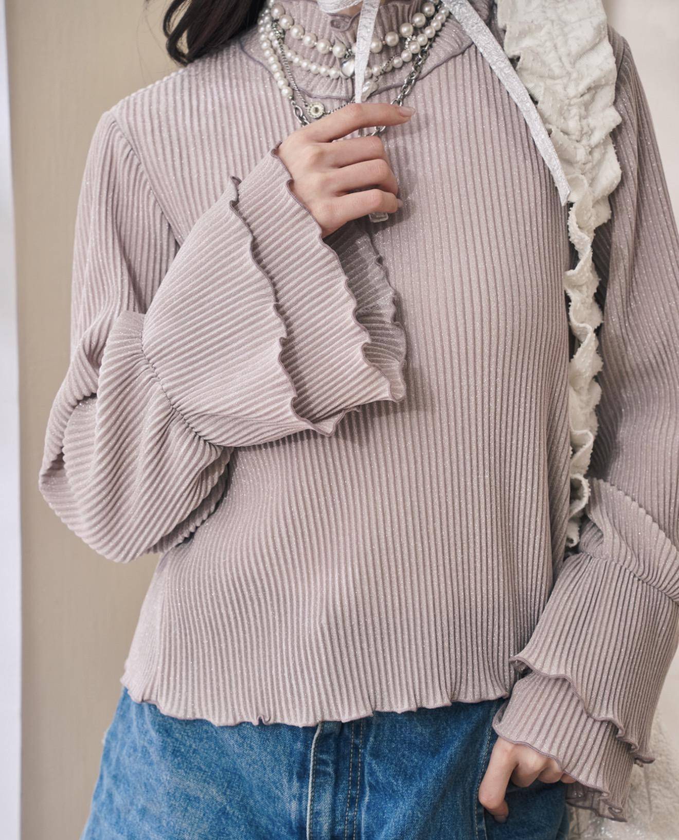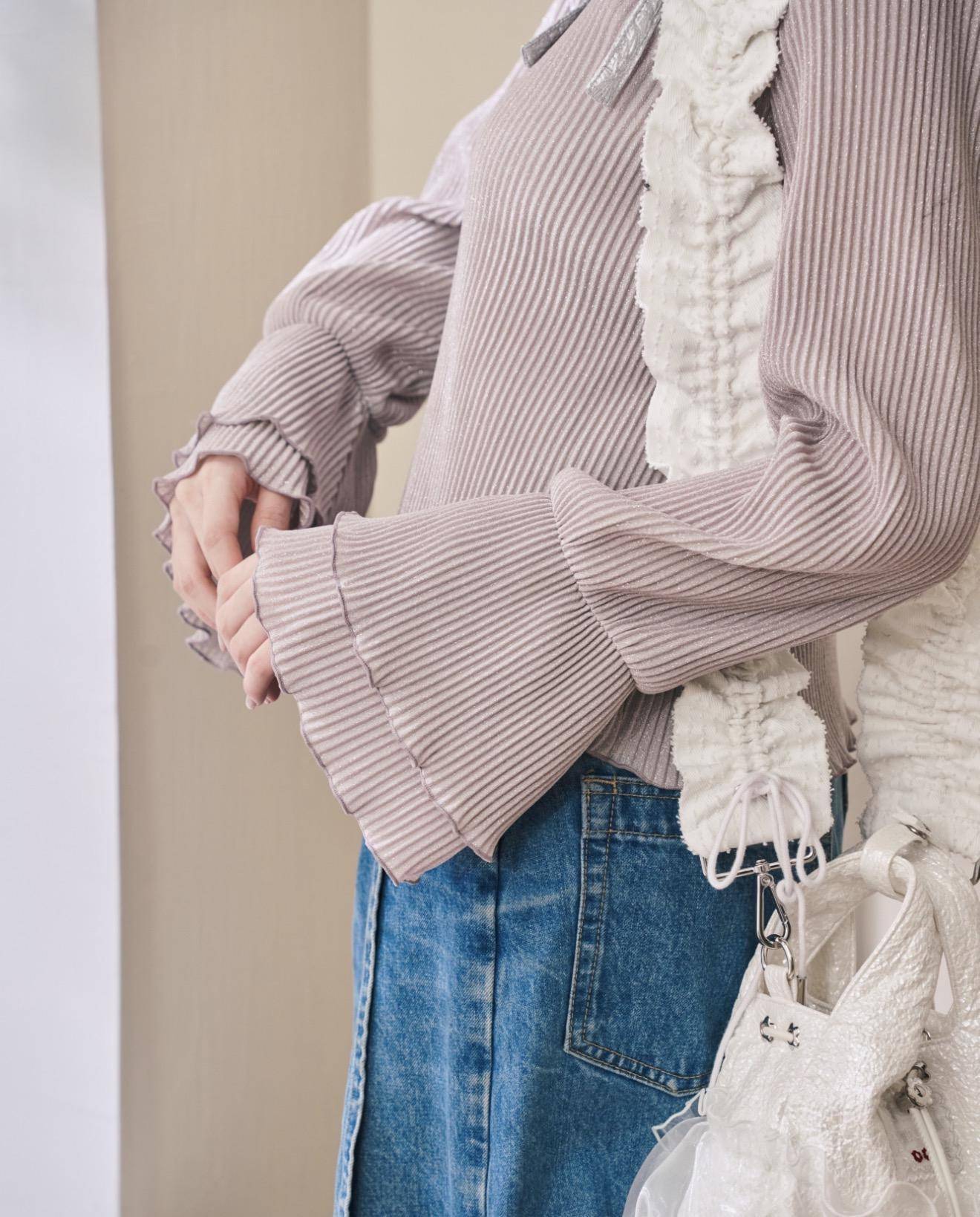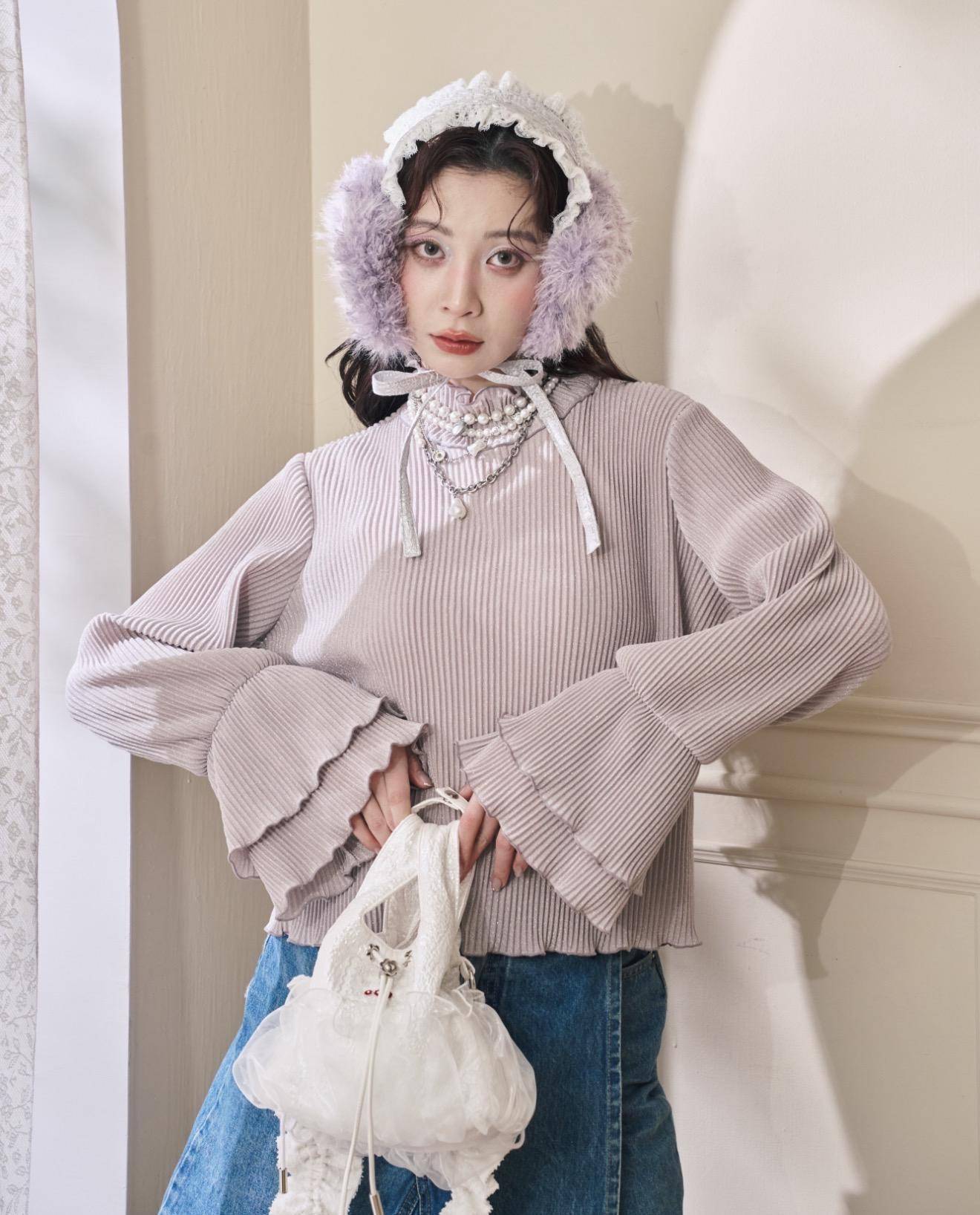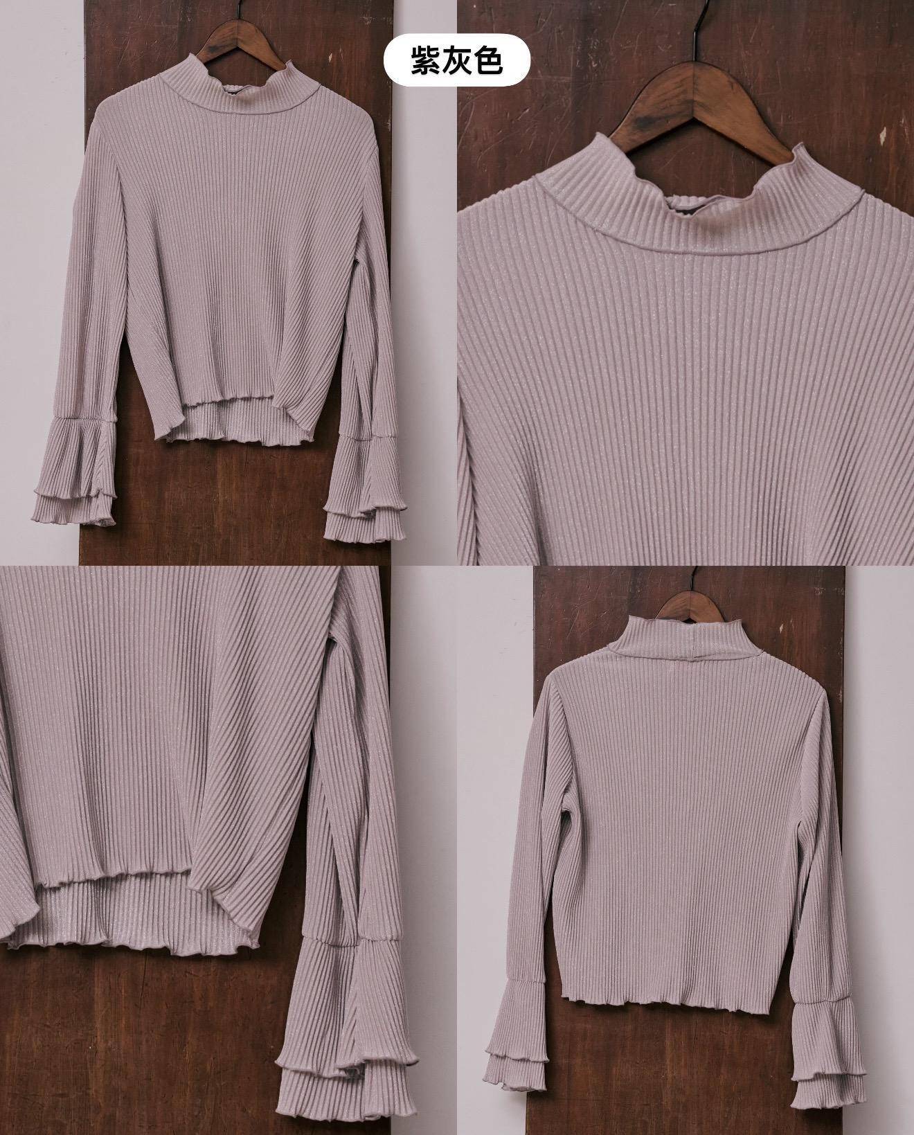 (紫灰色)立體壓紋喇叭袖內搭: