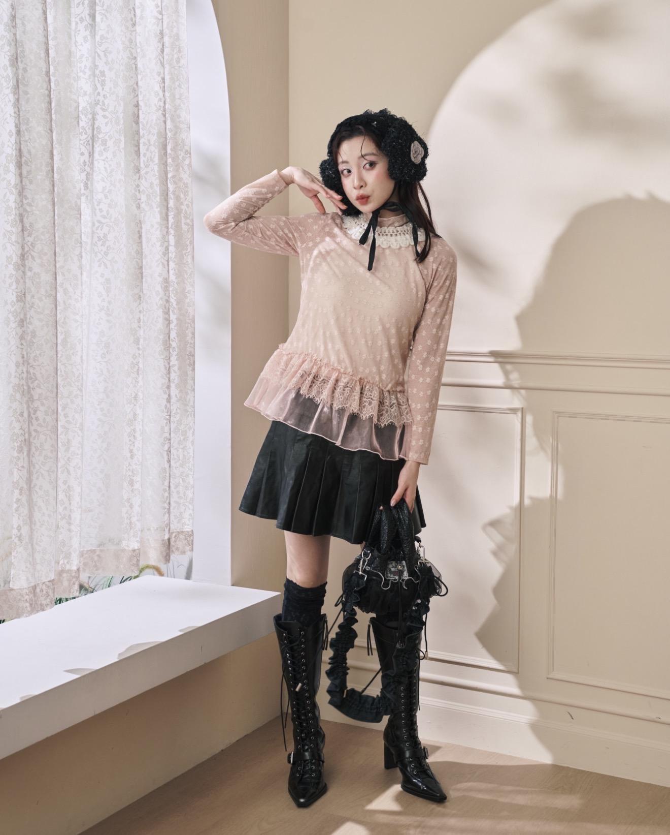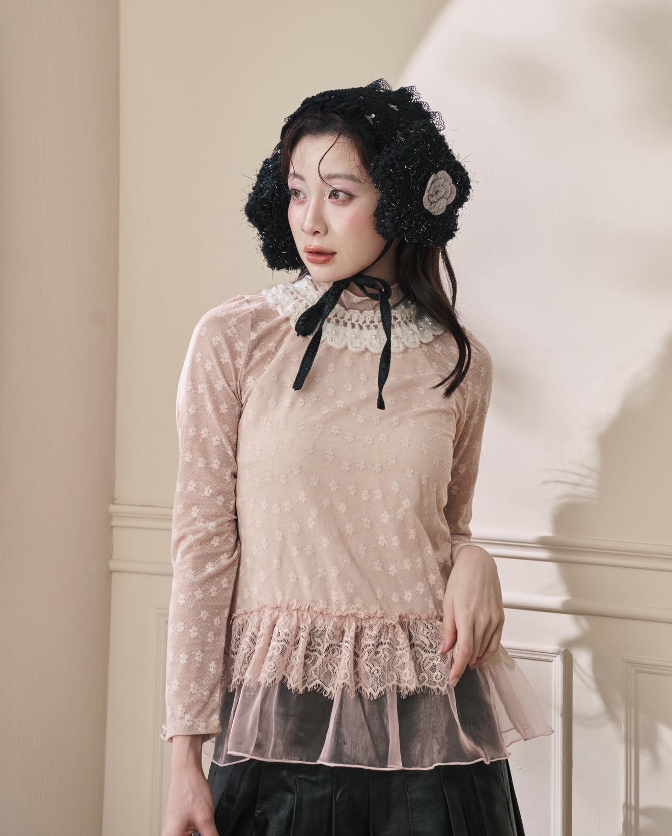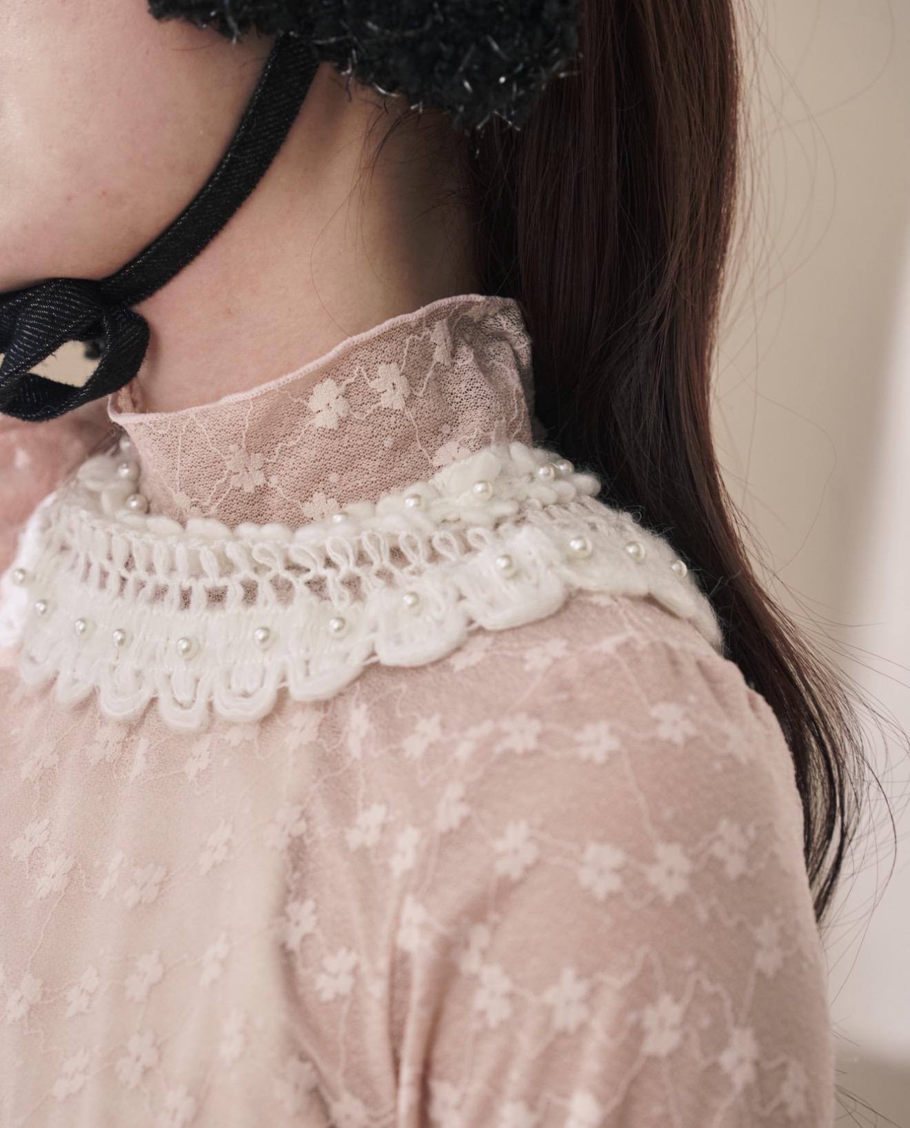 花花布料配上印刷點點還有下擺的珍珠紗和蕾絲,細節超級多穿起來舒服又華麗,還有領口的毛料針織裝飾✨