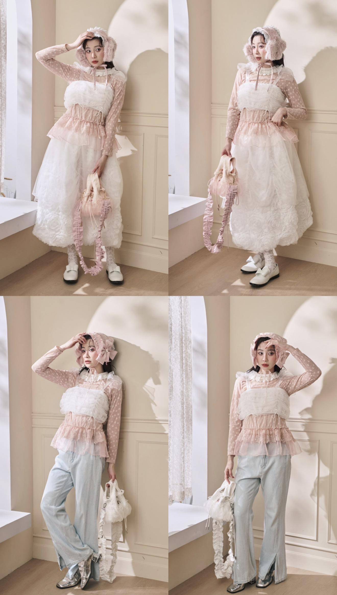 在這個小小的公主房裡,連空氣都像撒了亮粉一樣,閃閃發亮♡每一瞬間都像正在發生的夢🫧這次的冬季服裝系列,特別選用了 提花紗布、立體紗 等充滿細節的夢幻材質,製作成柔軟又超級百搭的洋裝與半身裙~