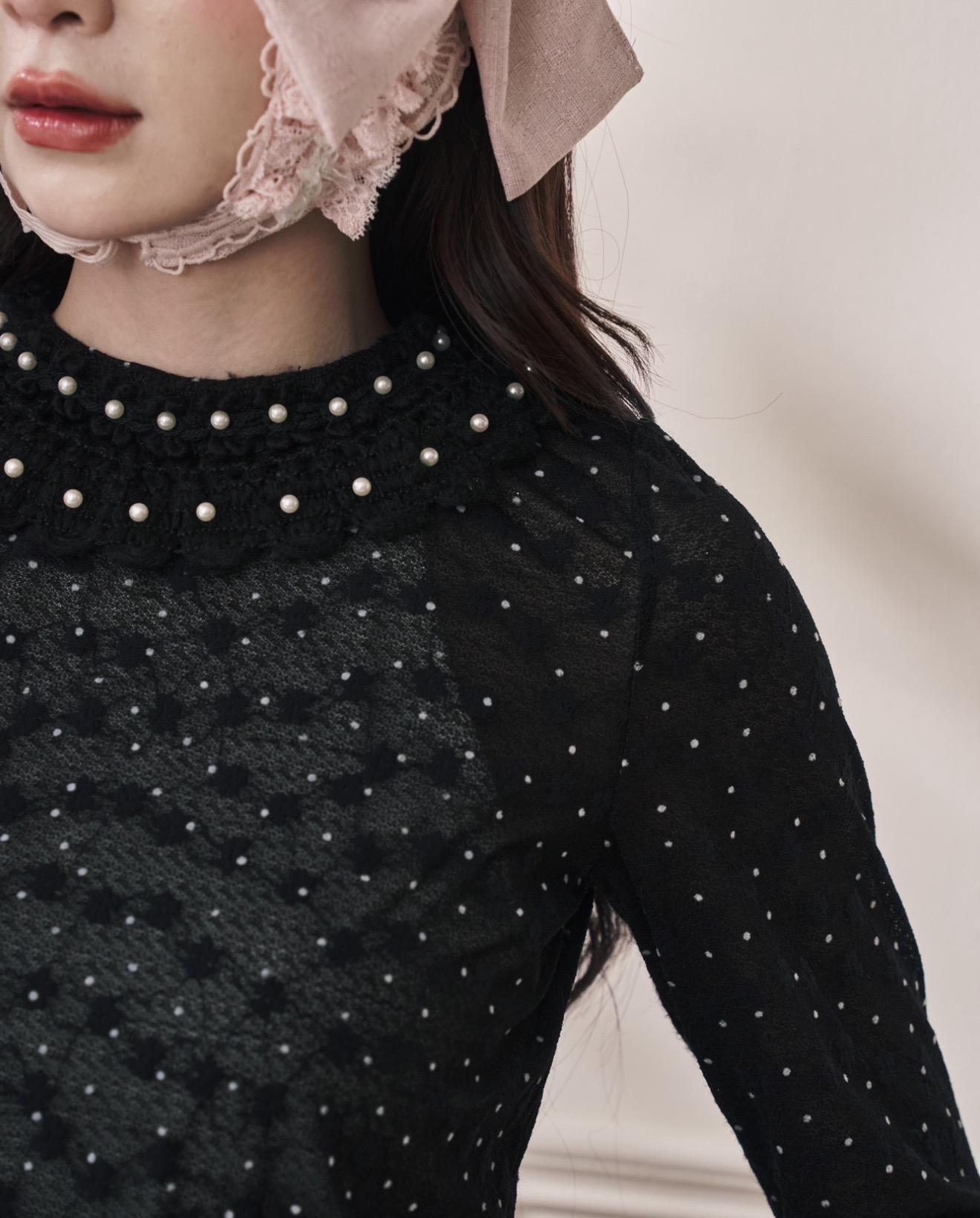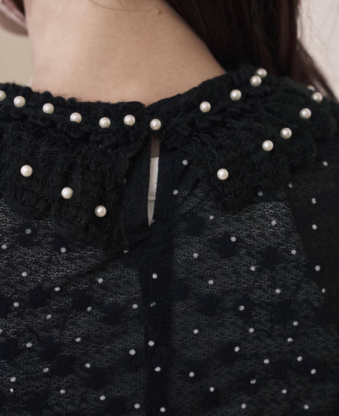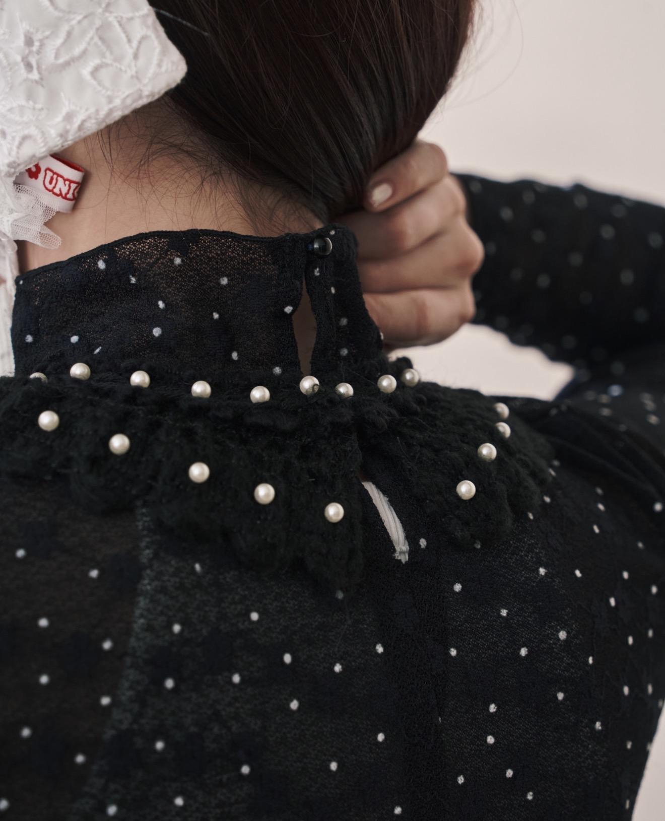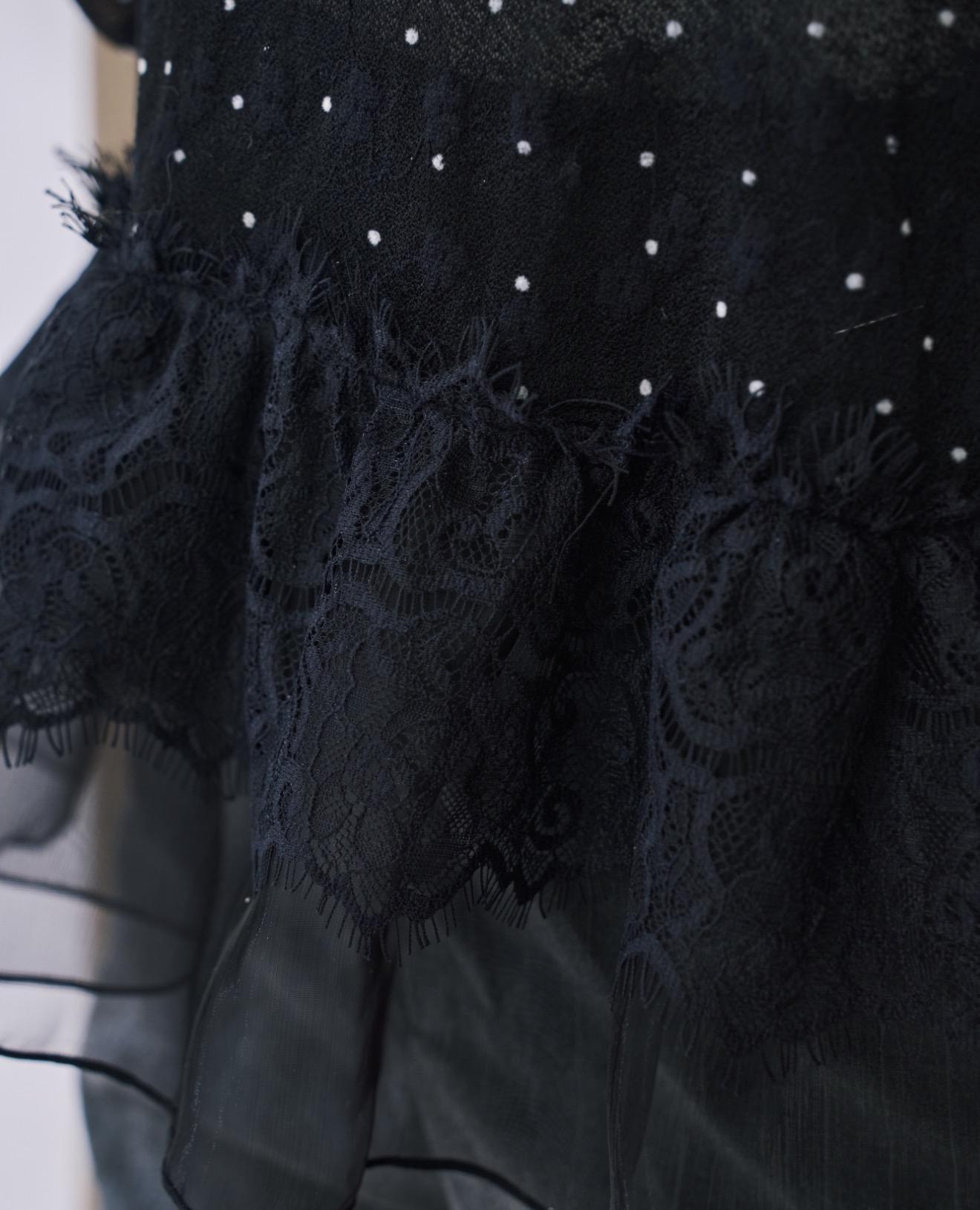 花花布料配上印刷點點還有下擺的珍珠紗和蕾絲,細節超級多穿起來舒服又華麗,還有領口的毛料針織裝飾✨