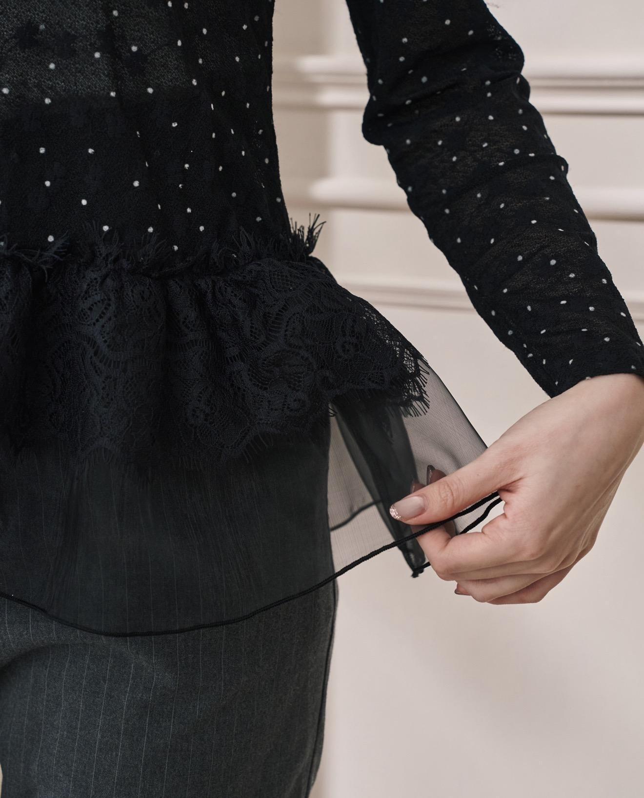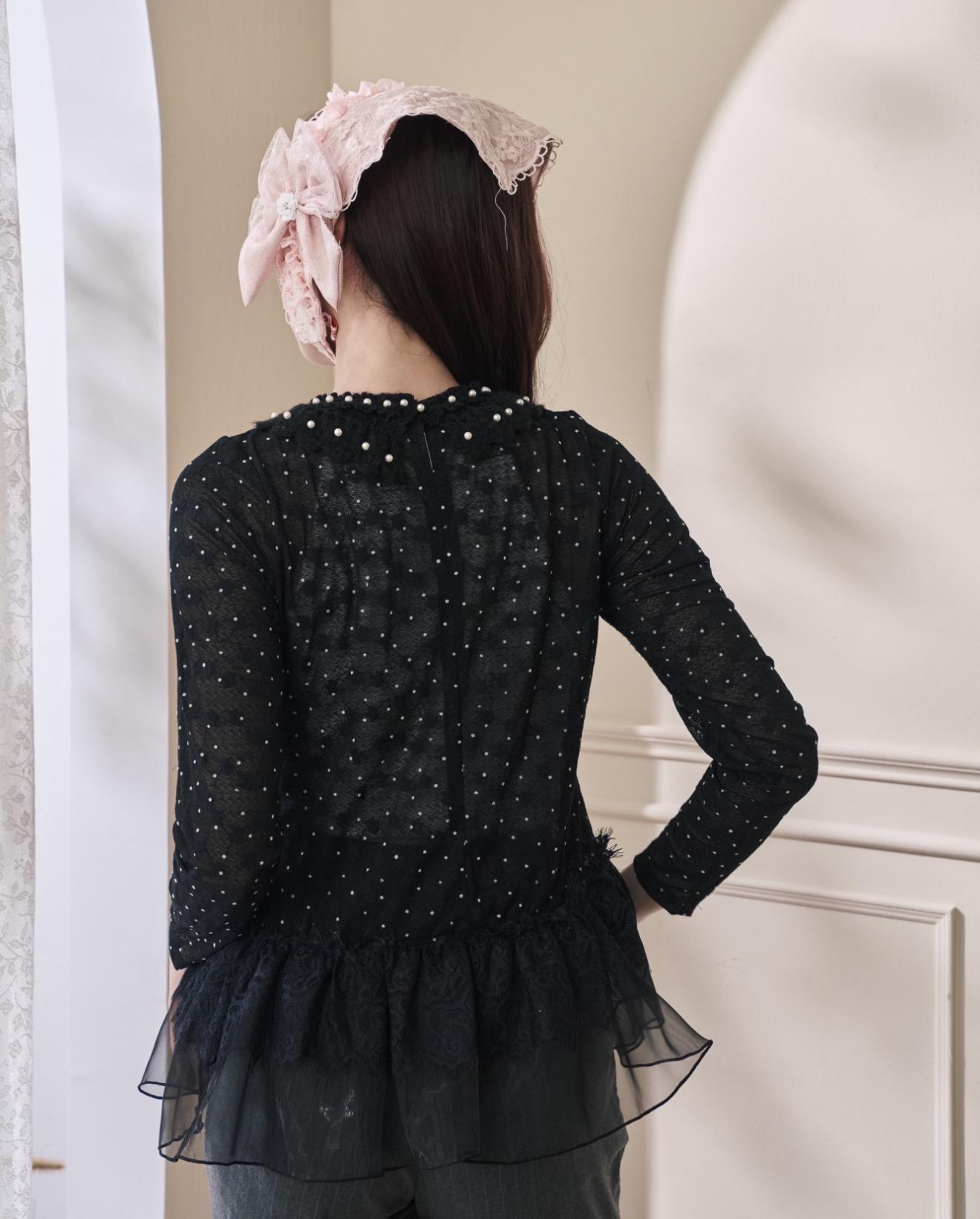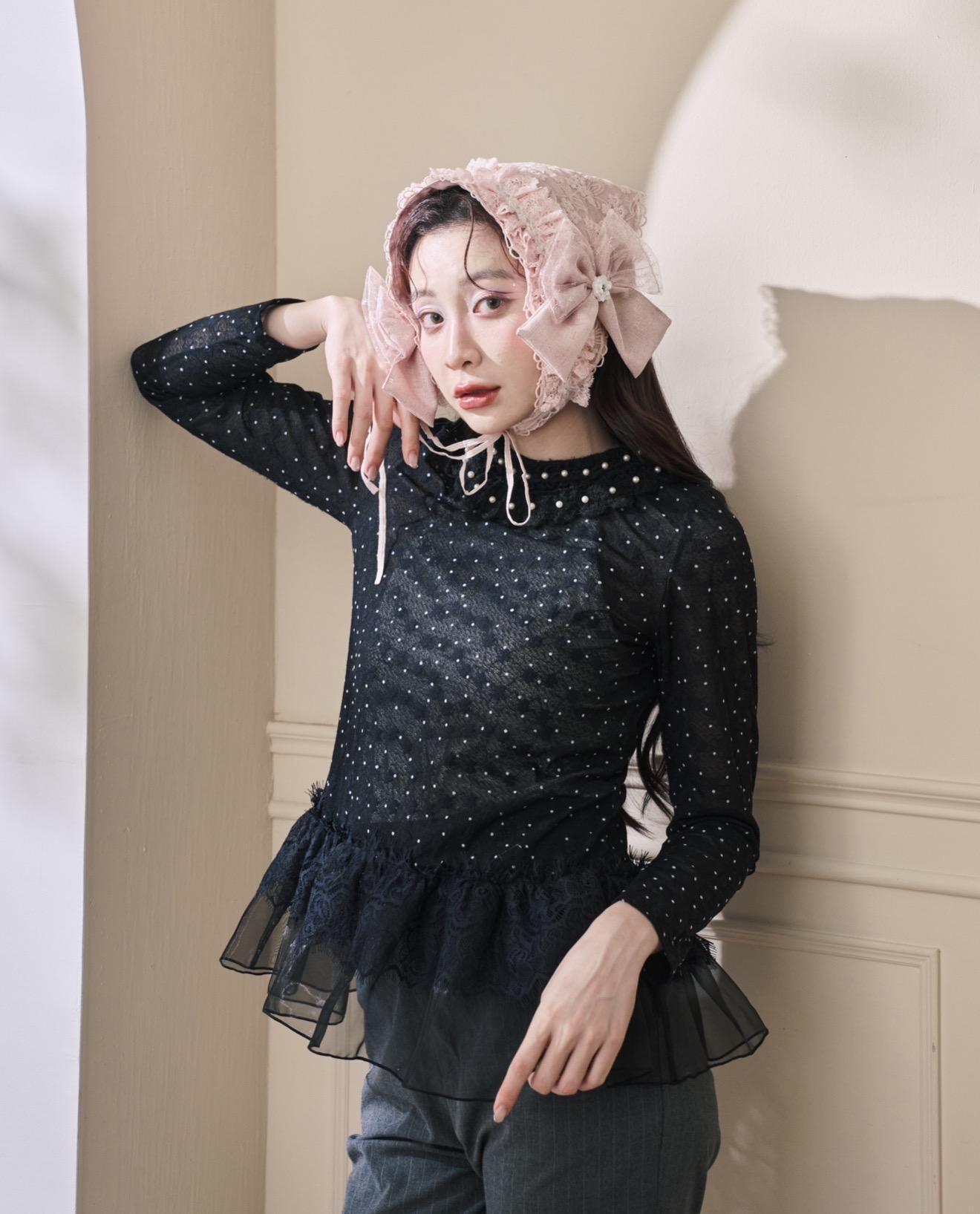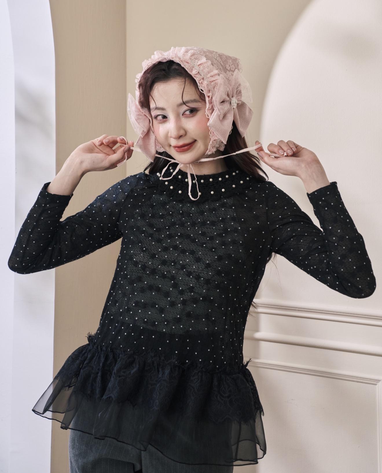 花花布料配上印刷點點還有下擺的珍珠紗和蕾絲,細節超級多穿起來舒服又華麗,還有領口的毛料針織裝飾✨