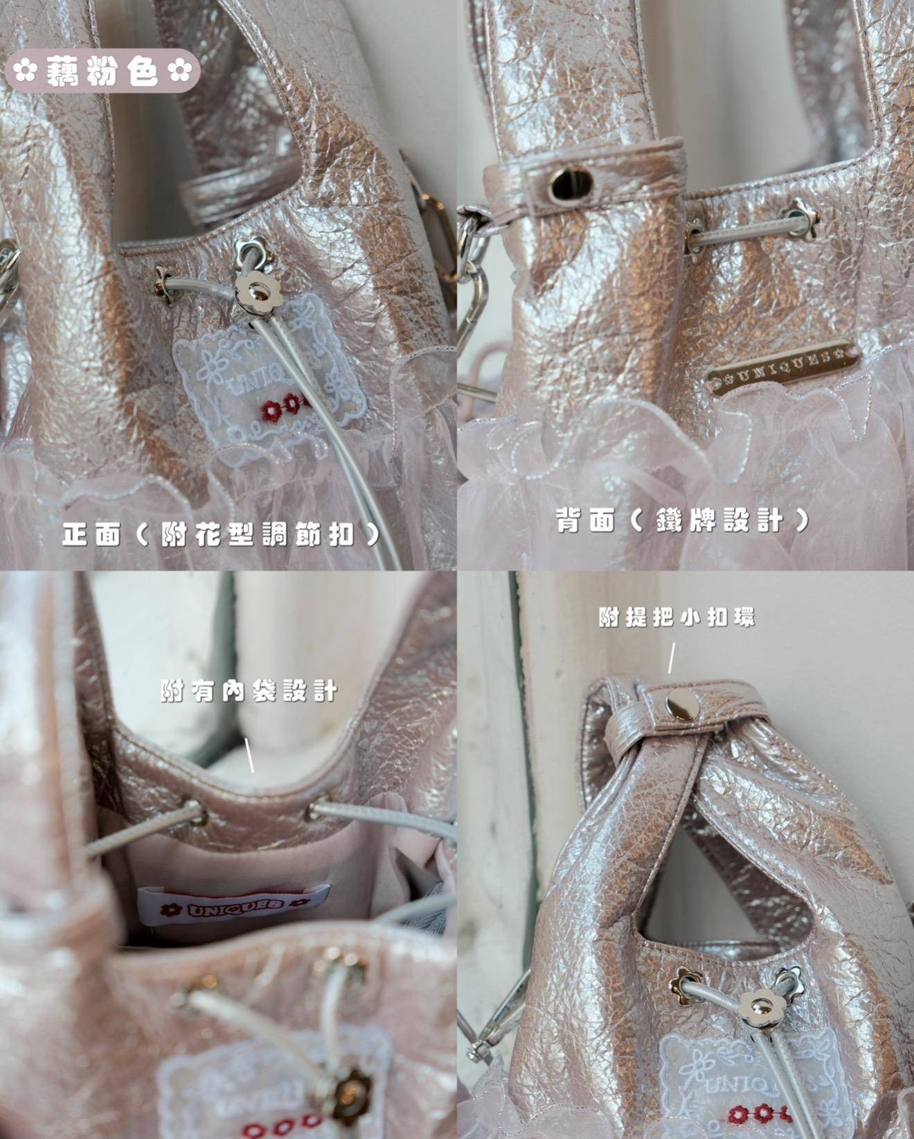 長背帶可拆卸、可自由調整長度,依照穿搭隨心變化🎀 提把扣環設計可自由扣上,讓提把合起來更俐落有型♡